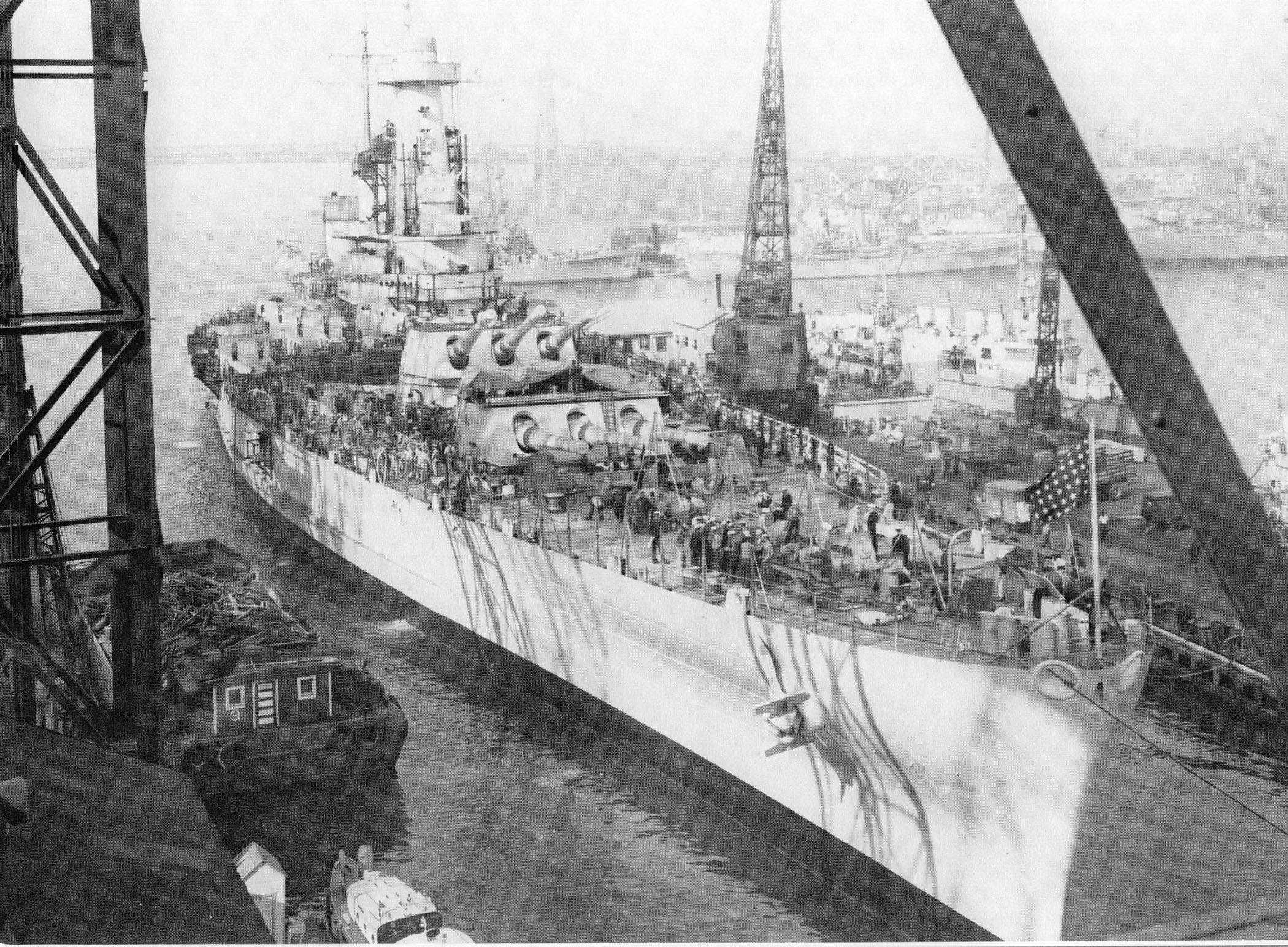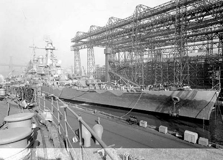 ![]() | 305k | North Carolina (BB-55) dry docked at New York Navy Yard during a refit, 1947. | Source: US Navy photo courtesy of Mike Green. | |