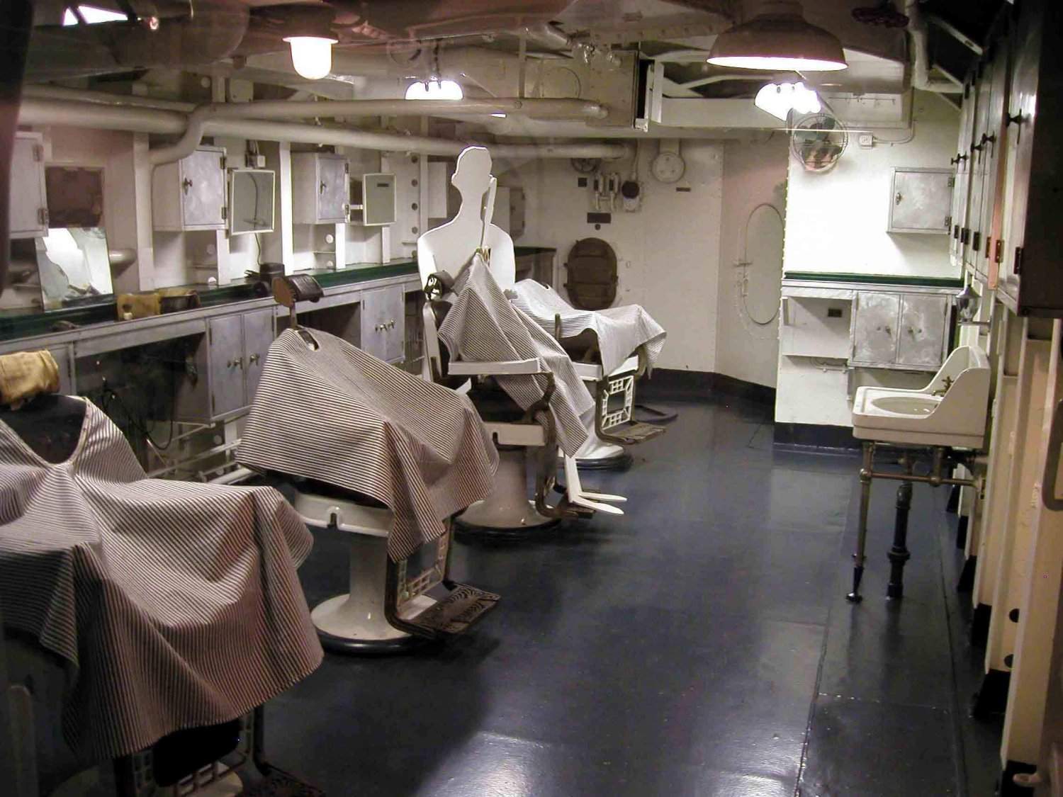 ![]() | 168k | The following 10 photos were taken by Robert Hall during a visit to the North Carolina (BB-55), Spring 2004. The first photo features the Barber shop. | Courtesy of Robert Hall. | |