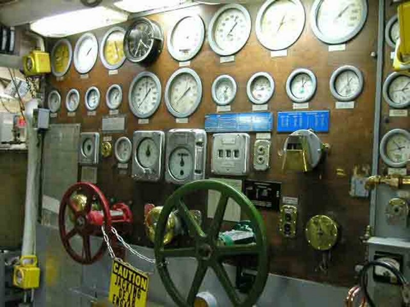![]() | 198k | A control panel in one of North Carolina's (BB-55) four engine rooms, August 2004. | Courtesy of Joe Hood, USS North Carolina Living History Crew (LHC). | |