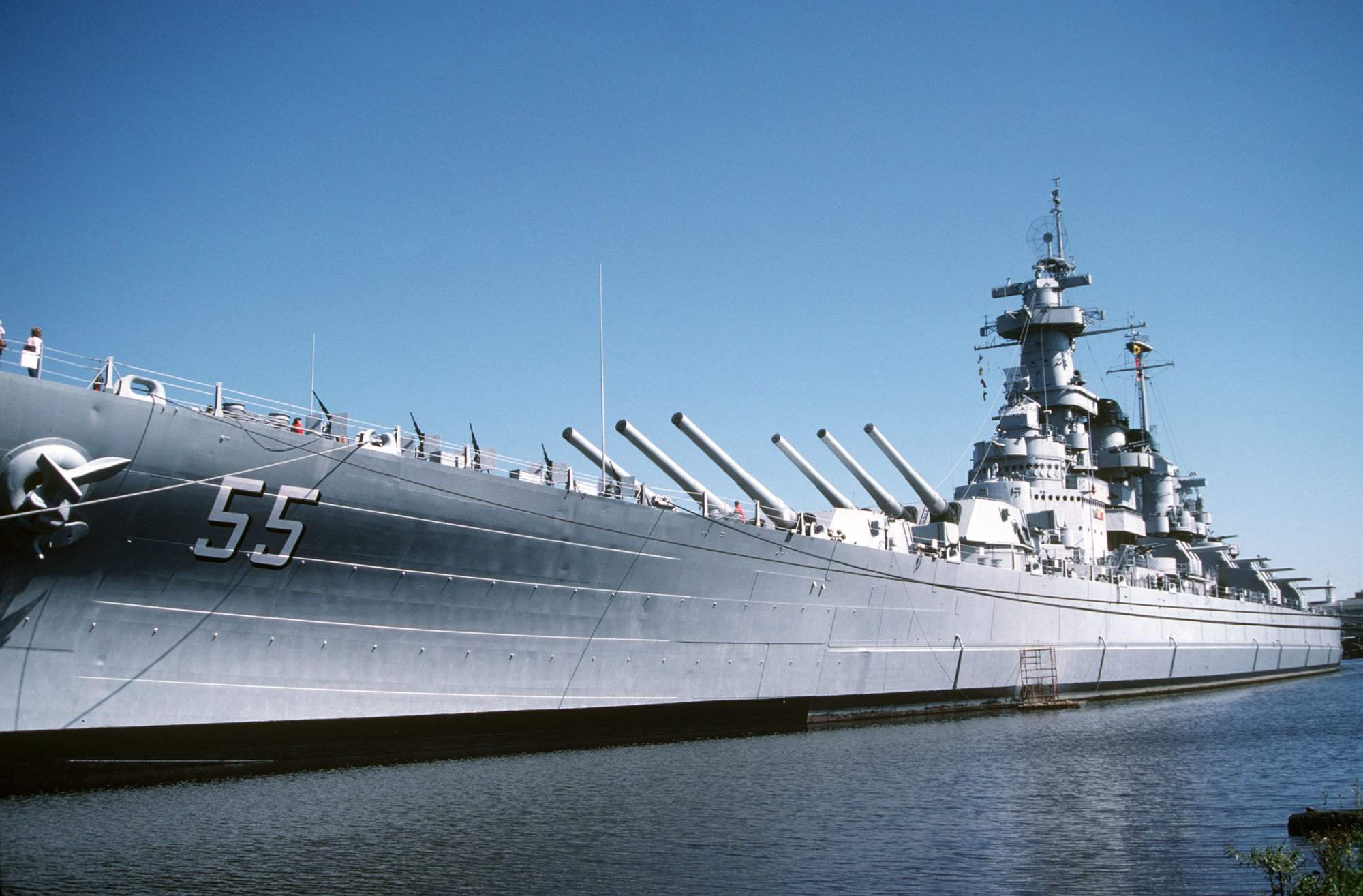 ![]() | 212k | A port bow view of the battleship North Carolina (BB-55) on 9 October 1988. | USN photo # DN-ST-89-00321, by Don S. Montgomery, from the Department of Defense Still Media Collection, courtesy of dodmedia.osd.mil. | |