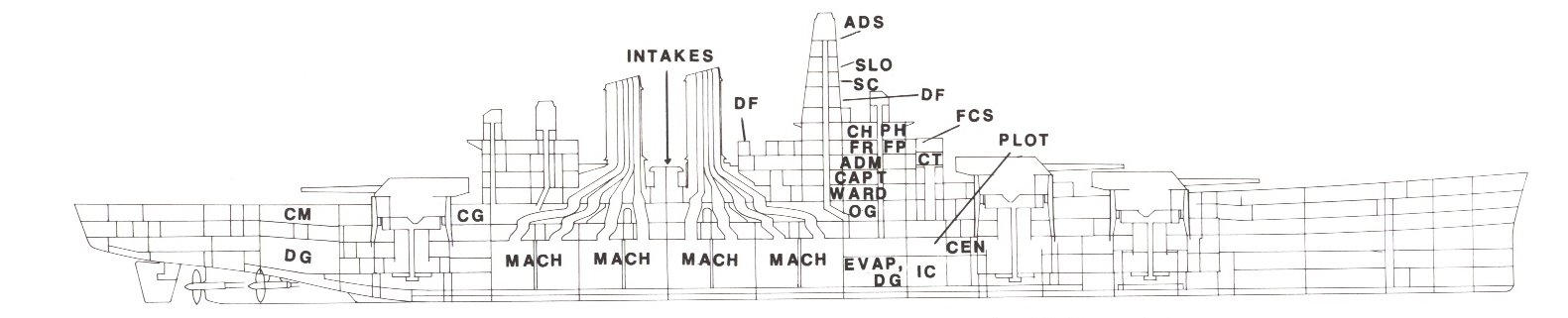 ![]() | 70k | North Carolina (BB-55) inboard profile, 1942. Unlike earlier U.S. battleships, she had a seperate conning tower level for fire control. | Photo & text courtesy of U.S. Battleships: An Illustrated Design History by Norman Friedman. | |