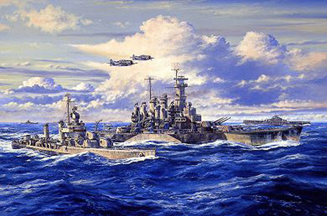 325k | Strikes on targets in the Japanese home islands laid the ground work for the Okinawa assault, in which North Carolina (BB-55) played her dual role, of bombardment and carrier screening. | Text courtesy of DANFS. Photo courtesy of Scott Koen & ussnewyork.com |