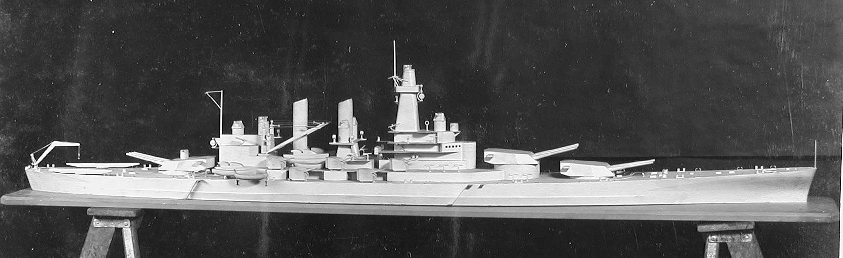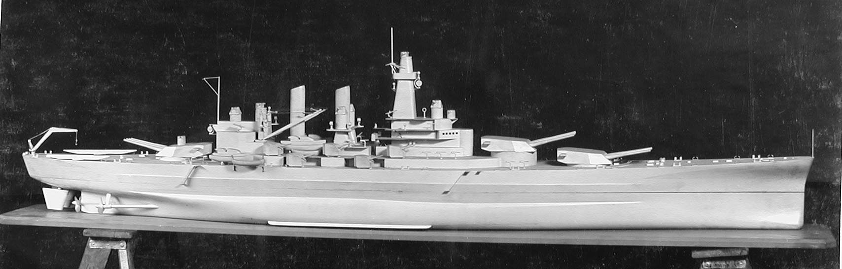 ![]() | 92k | Model of the North Carolina class (BB-55 / 56) without her propulsion system and skegs, 30 May 1937. | Photo from National Archives & Record Administration (NARA), Record Group (RG-19N) Box 33. Courtesy of Dan Treadwell. | |