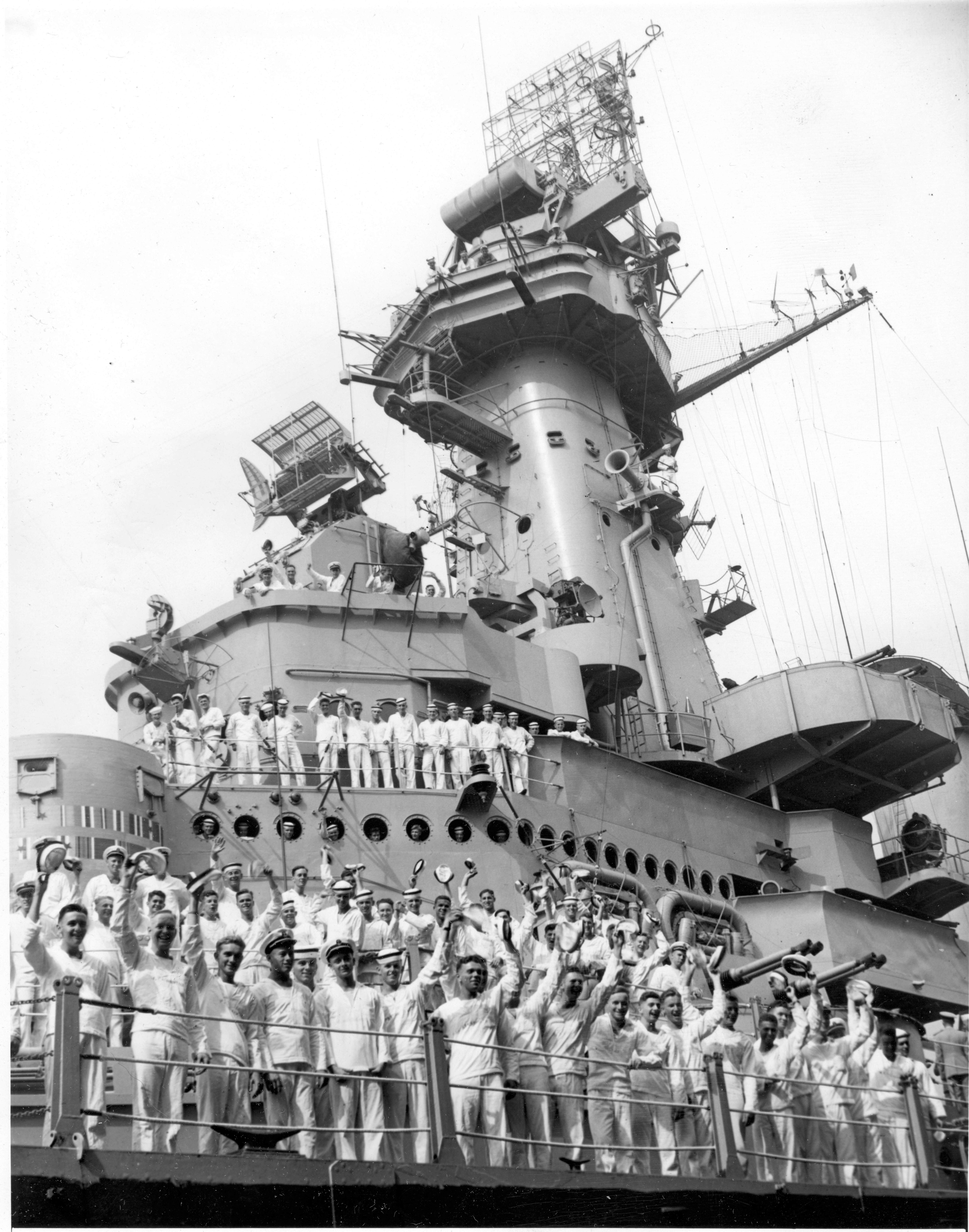 93k | Sailors aboard the Washington (BB-56), ca. 27 October 1945. | Accession number: 70-4033 courtesy of trumanlibrary.org | |