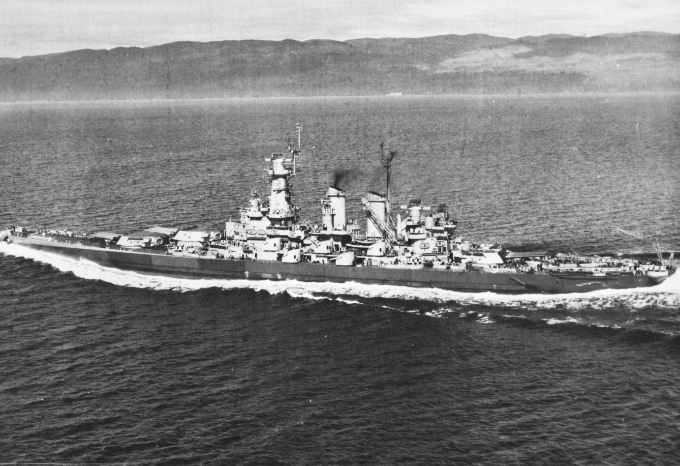 120k | Washington (BB-56) on post refit trials on 10 September 1945. | USN photo. | |