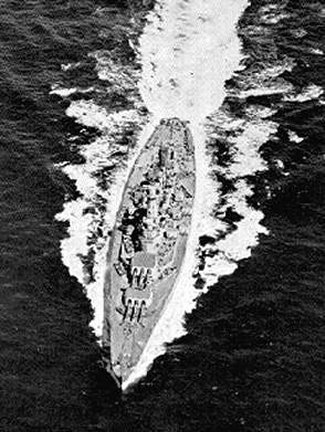 175k | Bow-on/overhead showing the ship at sea during 1943. | USN photo. | |