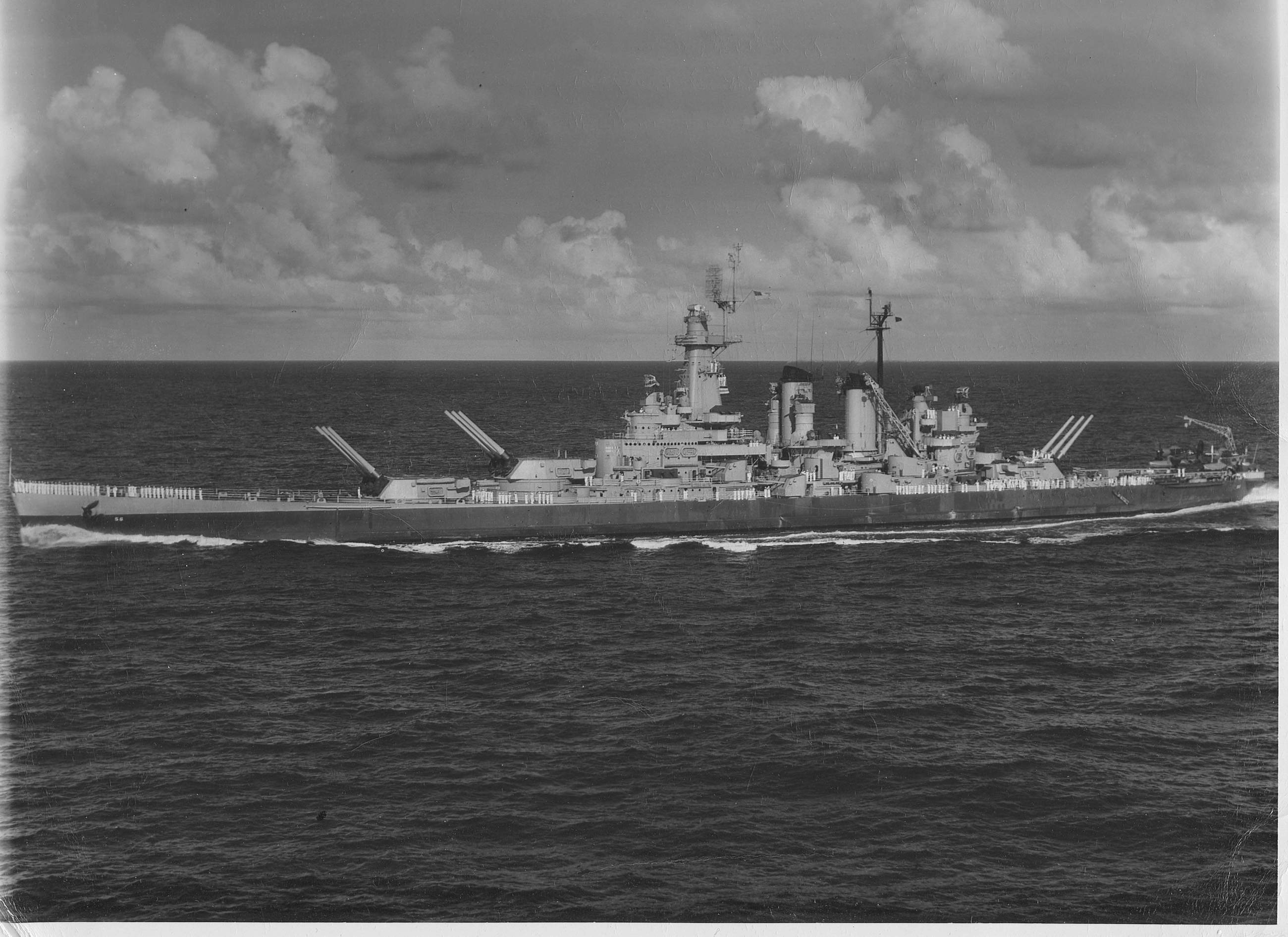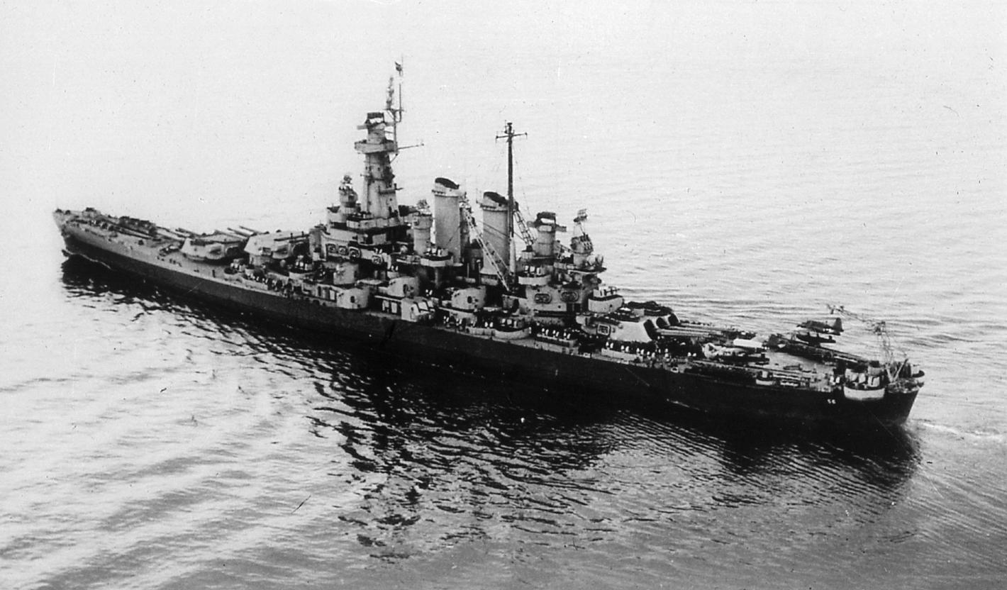 86k | Washington (BB-56) in the Pacific Ocean. Photo taken late '44-early '45. | USN photo. | |