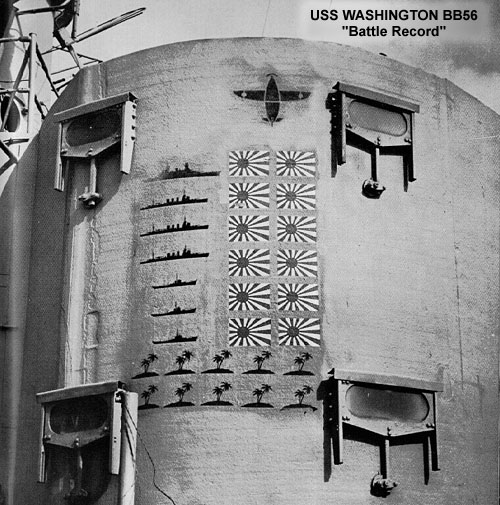 82k | Washington (BB-56) scoresheet on the conning tower. | USN photo. | |