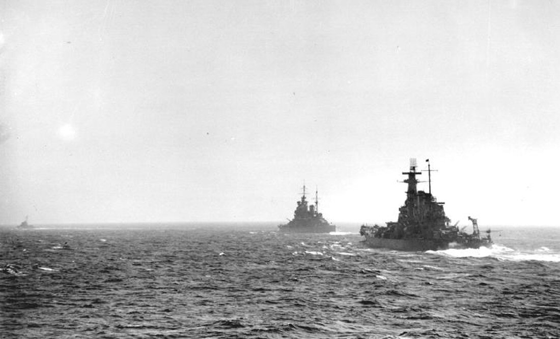 580k | A homeward bound US Freighter passing HMS Duke of York and Washington (BB-56) in May, 1942 off Hvalfjord, Iceland. | Source: Imperial War Museum Admiralty Official Collection by Ware C.J. (Lt), Photo No.IWM (A 8962) © courtesy of Mike Green. | |