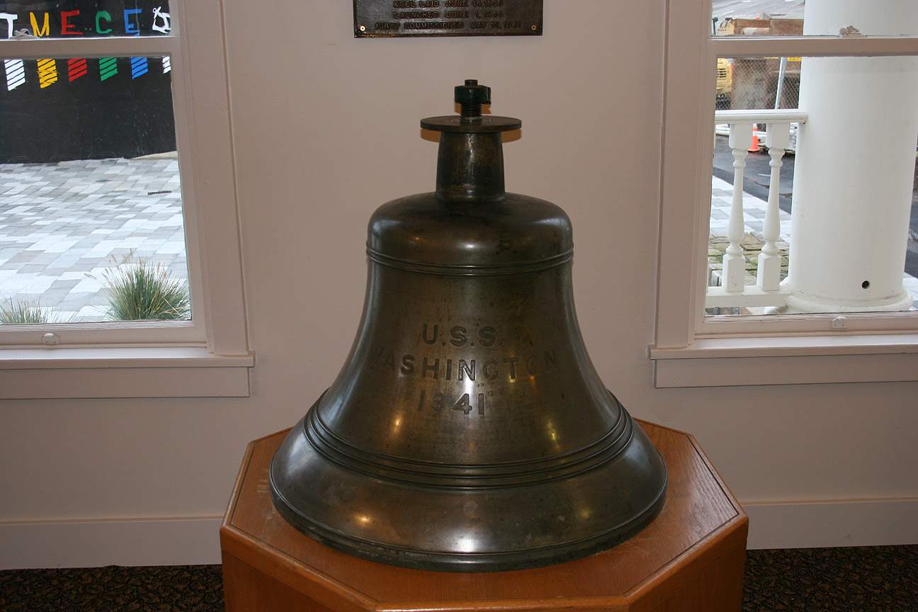 83k | The Washington's (BB-56) bell located at the new Naval Museum at the Naval Shipyard in Bremerton, Wa. | Photo courtesy of Larry Lee RM1/USN Ret. | |