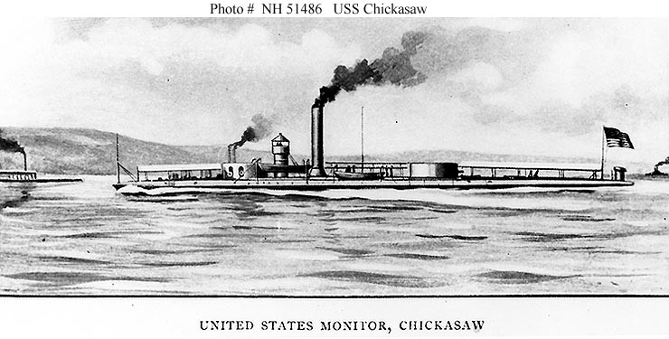 66k | Halftone reproduction of an artwork, depicting the Chickasaw during the Civil War. | U.S. Naval Historical Center Photograph # NH 51486. | |