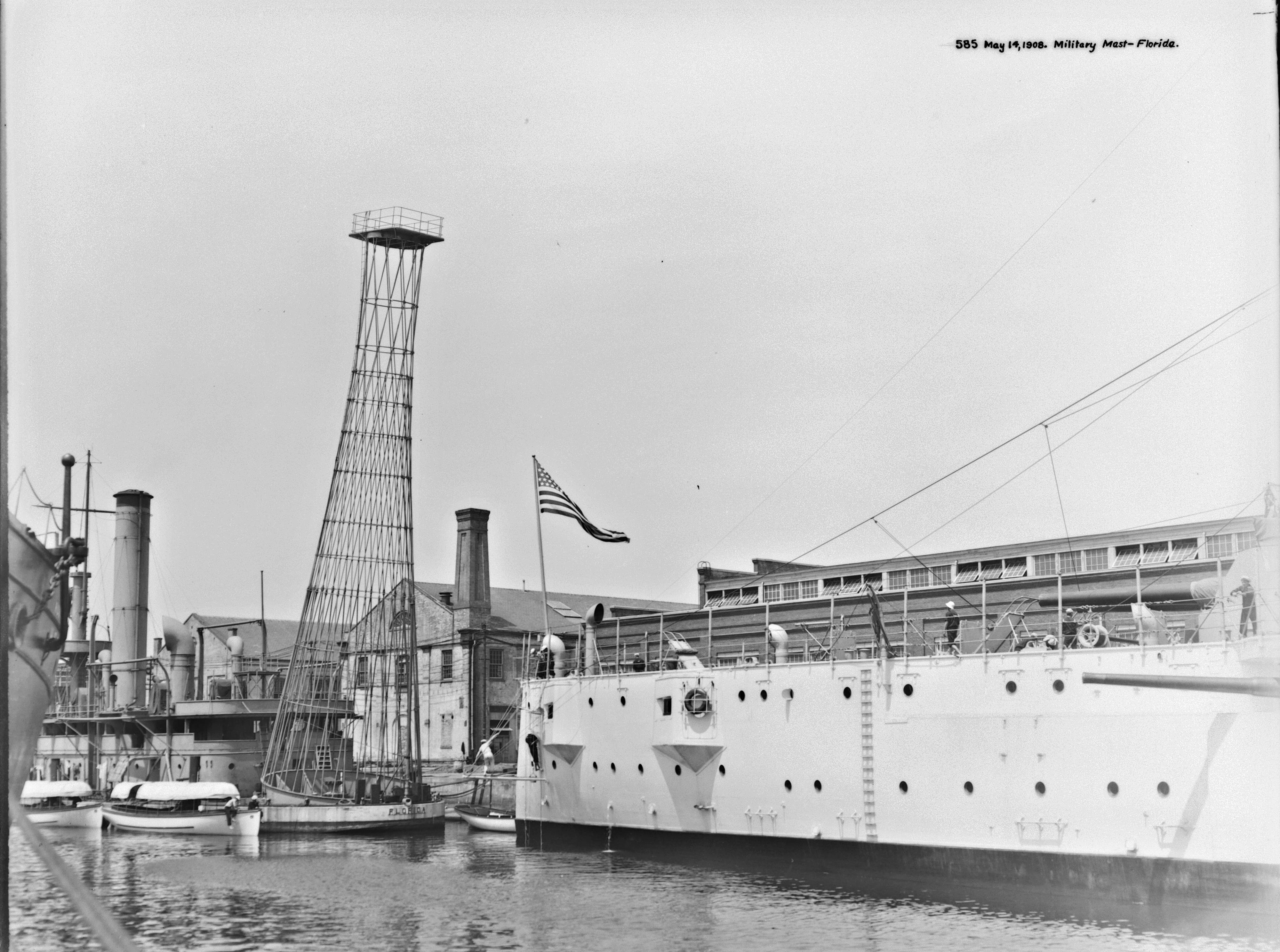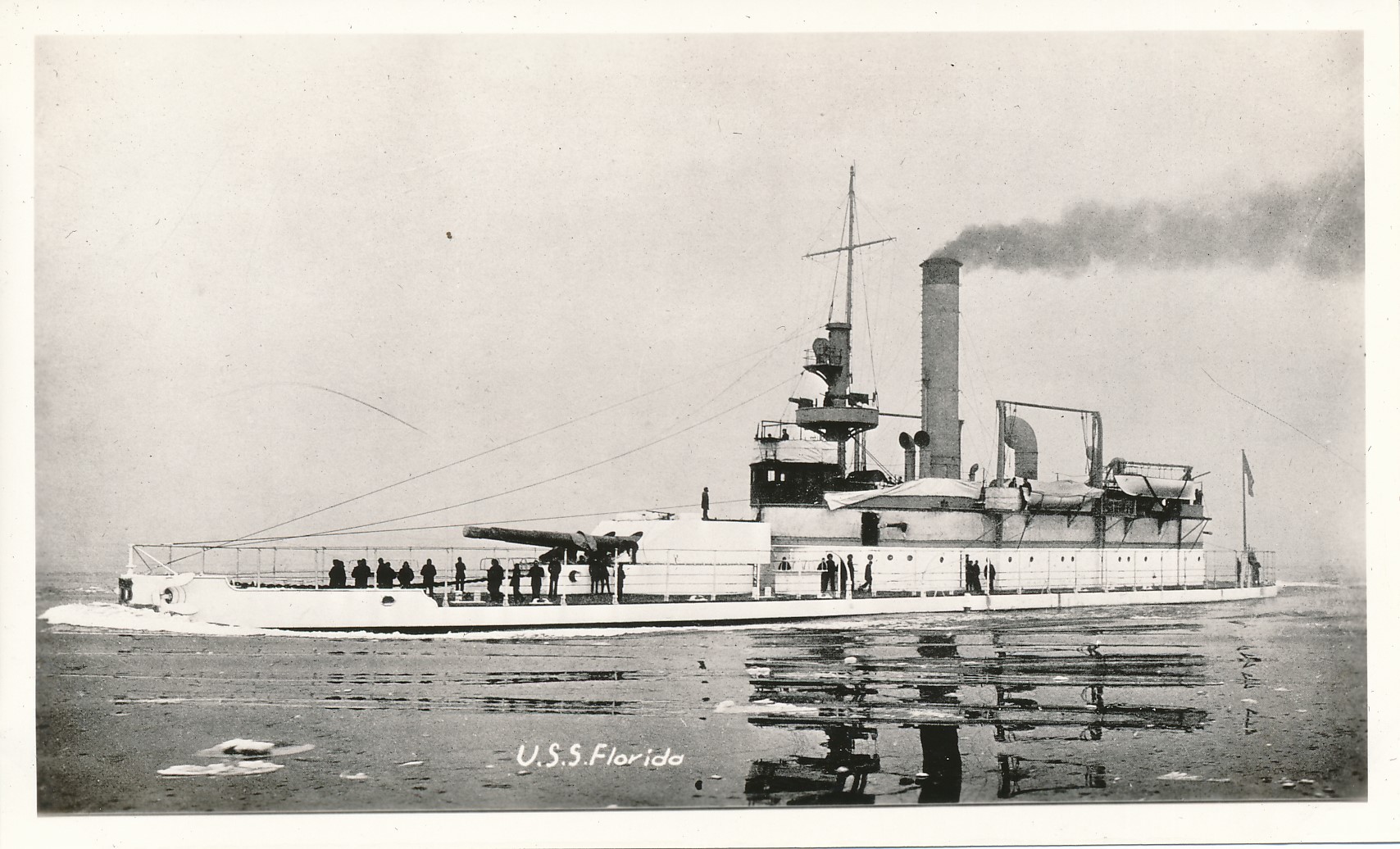 1.10k | Florida (M-9) before her mast. | National Archives Identifier: 45698806 Local Identifier: 181-V-0557 Photo courtesy of catalog.archives.gov |