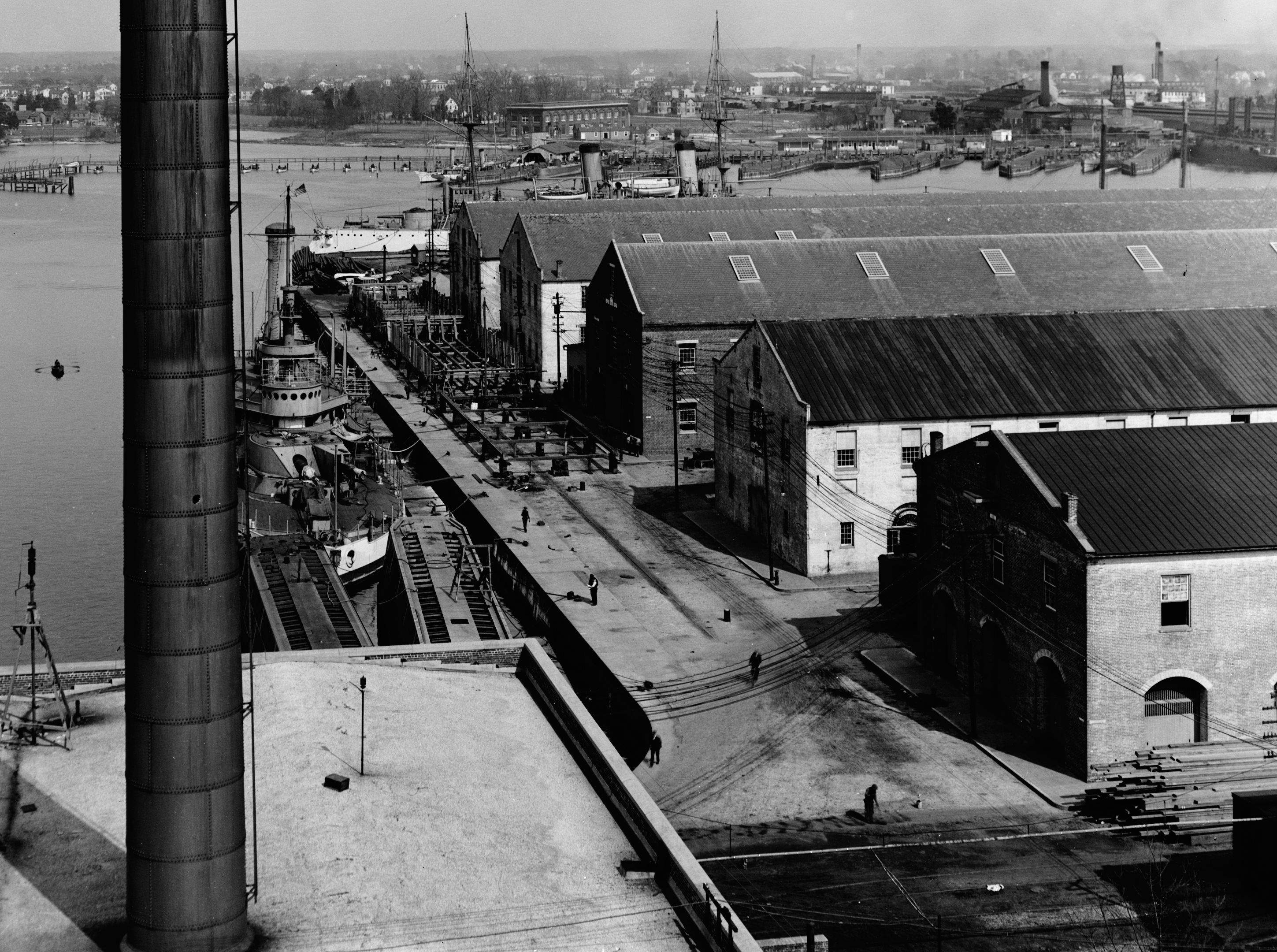 755k | Norfolk VA, Brown Avenue 26 October 1908. On the left is an Arkansas class monitor. Moving right there are several torpedo boats, then an A-class submarine, probably Moccasin (SS-5) along with the Holland (SS-1). | Photo & text i.d. courtesy of Dave Johnston (USNR) from NARA. | |