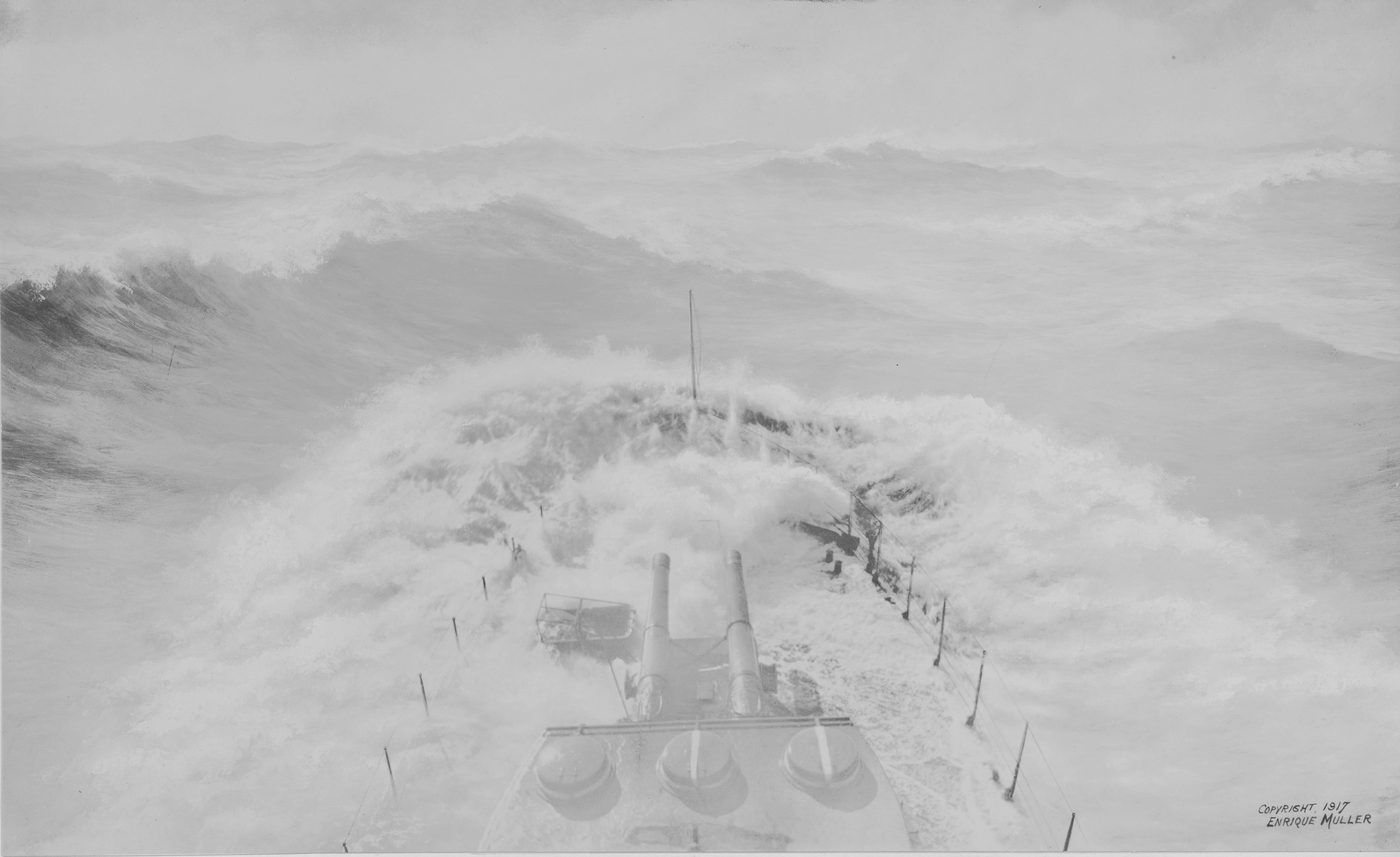 766k | U.S. Monitor Tallahassee in a storm, 1917. | National Archives Identifier: 45513474 Local Identifier:165-WW-337E-19 Photo by Enrique Muller Jr, courtesy of catalog.archives.gov |