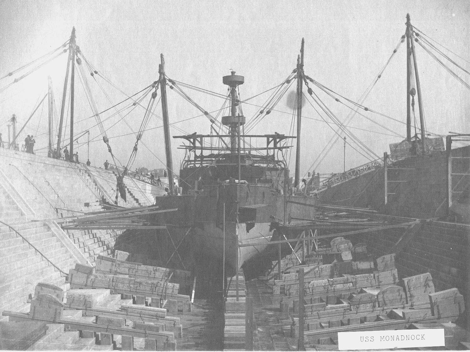 ![]() | 129k | The Monadnock (BM-3) is seen entering dry dock 1 at Mare Island Naval Yard on 21 April 1898. | USN photo courtesy of Darryl L Baker. | |