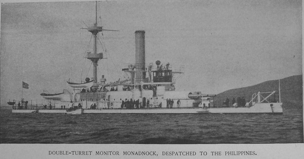 ![]() | 85k | Double turret monitor Monadnock (BM-3), dispatched to the Philippines. | Photo courtesy of A History of the War of 1898, published by Collier in 1898, and submitted by Daniel Wilmes. | |