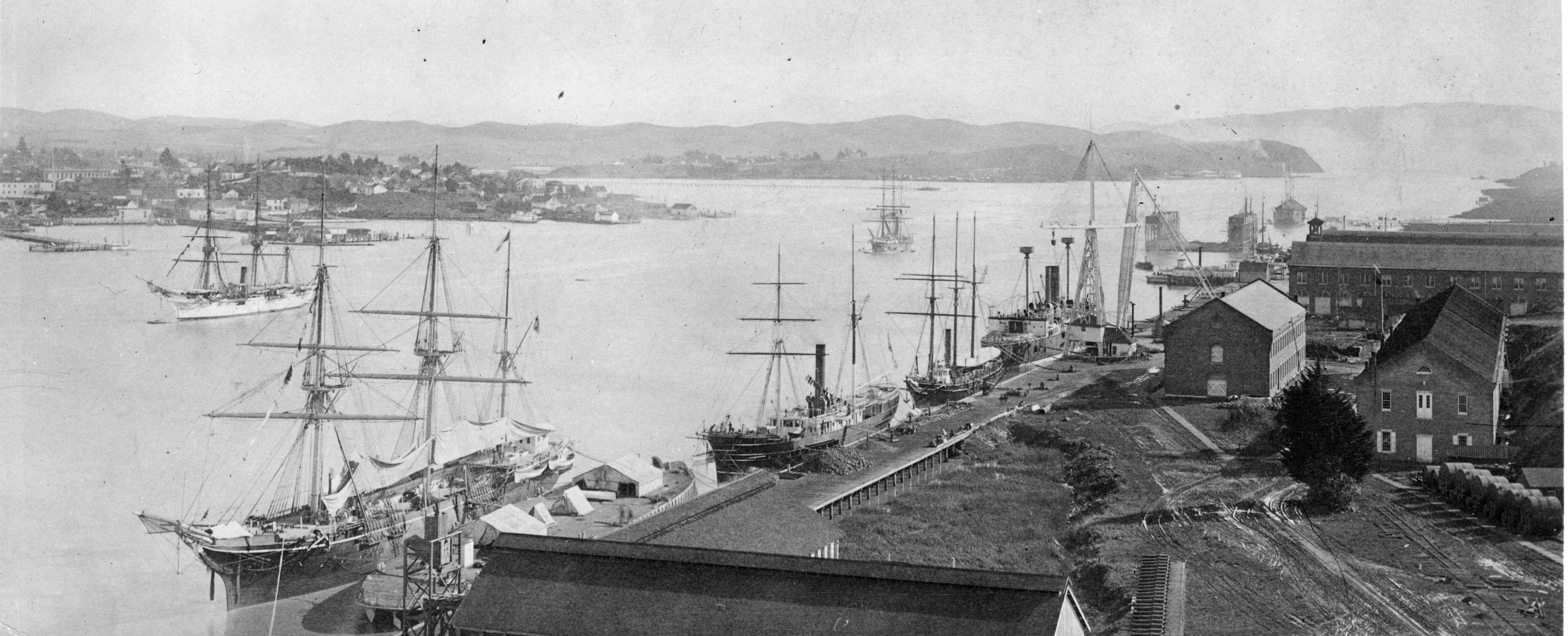 NR | SCENE IN THE STREAM OFF THE MARE ISLAND NAVY-YARD. Either the Monterey (BM-6) and Monadnock (BM-3) appear among the ships here. |