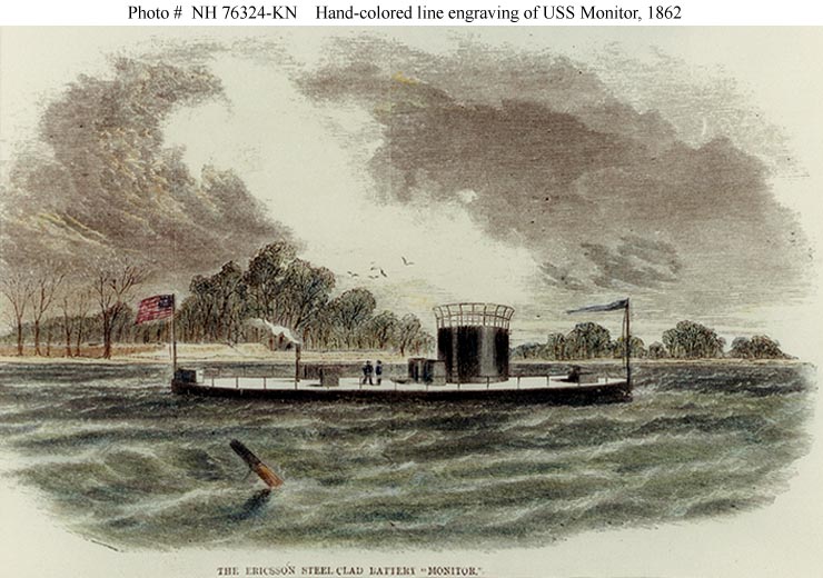 89k | Engraving of the Monitor, published in Harper's Weekly, 22 March 1862. This copy has been hand-colored. | Courtesy of the U.S. Navy Art Collection, Washington, D.C. U.S. Naval Historical Center Photograph. USNHC # NH 76324-KN. | |||||||||||||||||||||||||||||||||||||||||||||||||||||||||||||||||||||||||||||||||||||||||||||||||||||||||||||||||||||||||||||||||||||||||||||