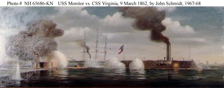 39k | Monitor vs CSS Virginia, 9 March 1862. | U.S. Naval Historical Center Photograph. USNHC # NH 65686-KN. Courtesy of the Marine Midland National Bank. Painting by Rear Admiral John W. Schmidt, USN (Retired), 1967-68, located at the Marine Midland National Bank, Troy, New York. | |||||||||||||||||||||||||||||||||||||||||||||||||||||||||||||||||||||||||||||||||||||||||||||||||||||||||||||||||||||||||||||||||||||||||||||