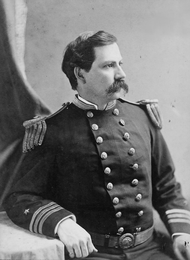 457k | Samuel Dana Greene was born in Cumberland, Maryland, son of future U.S. Army General George S. Greene. He graduated from the United States Naval Academy in 1859 and became a lieutenant two years later. He was executive officer of the Monitor during its historic five-hour battle with ironclad CSS Virginia 9 March 1862 and assumed command after Captain John Lorimer Worden was wounded in the pilot-house and was attempting to re-engage the Virginia, however the Virginia had already turned away toward Norfolk. He served as her only executive officer on the Monitor in the engagements on the James River, Virginia, April to May 1862, and when the ship founderedin a gale on 31 December 1862, which Greene survived after being pulled into a lifeboat by the ship's surgeon, Dr. Grenville M. Weeks. He served with distinction throughout the Civil War. | Image by permission of the Mariners' Museum Collections via Bill Gonyo. | |||||||||||||||||||||||||||||||||||||||||||||||||||||||||||||||||||||||||||||||||||||||||||||||||||||||||||||||||||||||||||||||||||||||||||||