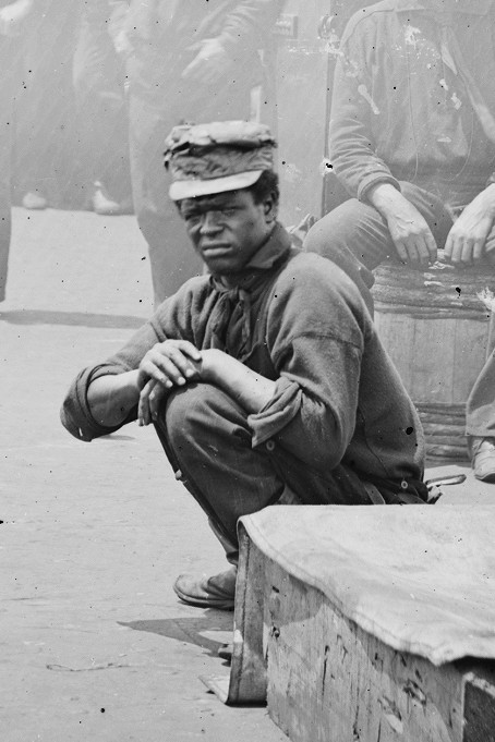 87k | Like many other African American slaves, Siah Carter sought freedom and refuge in the Union Navy along the myriad waterways of the southern interior. At the time he joined the Union Navy, Carter was a slave at the Shirley Plantation in Charles City, Virginia. He became the first of eighteen slaves to escape from Shirley Plantation in 1862, Twenty-two year old Carter fled down the James River two months after the Battle of Hampton Roads, finding Monitor lying at anchor. He enlisted aboard the ironclad as a "first class boy," serving as a coal heaver and cook's assistant for the duration of the ship's short existence. Carter survived the sinking of the famed vessels in December 1862, going on to serve on several other Union ships until the end of the war. He was discharged from the Union Navy in May 1865. | Text from the blog "Civil War Navy Sesquicentennial". Image # 00306u courtesy of the Library of Congress via Bill Gonyo. | |||||||||||||||||||||||||||||||||||||||||||||||||||||||||||||||||||||||||||||||||||||||||||||||||||||||||||||||||||||||||||||||||||||||||||||