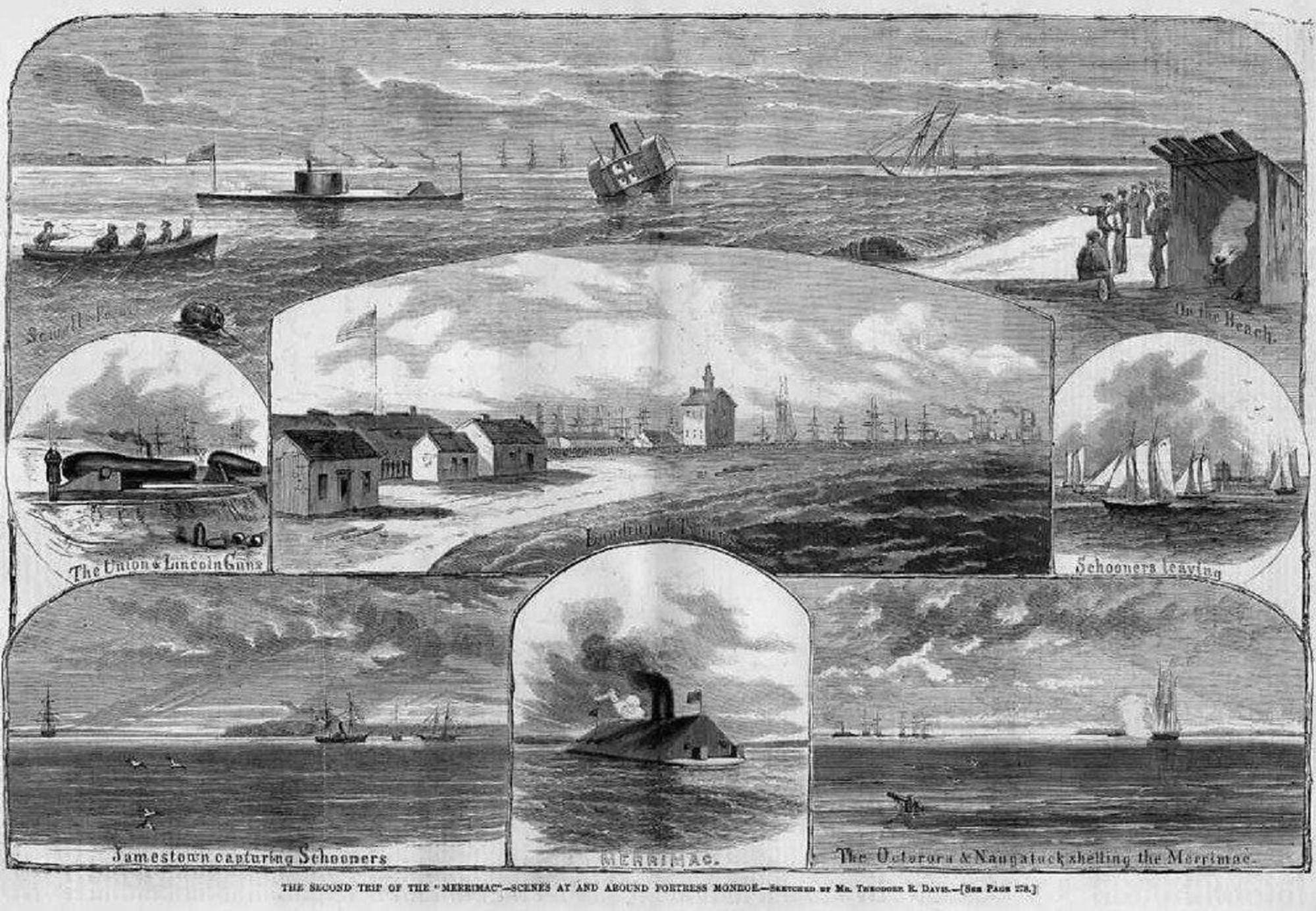 1.45k | Civil War wood-cut engraving/print is titled "THE SECOND TRIP OF THE MERRIMAC--SCENES AT AND AROUND FORTRESS MONROE", published in "Harper's Weekly", May 1862. | Photo courtesy of Tommy Trampp. | |||||||||||||||||||||||||||||||||||||||||||||||||||||||||||||||||||||||||||||||||||||||||||||||||||||||||||||||||||||||||||||||||||||||||||||