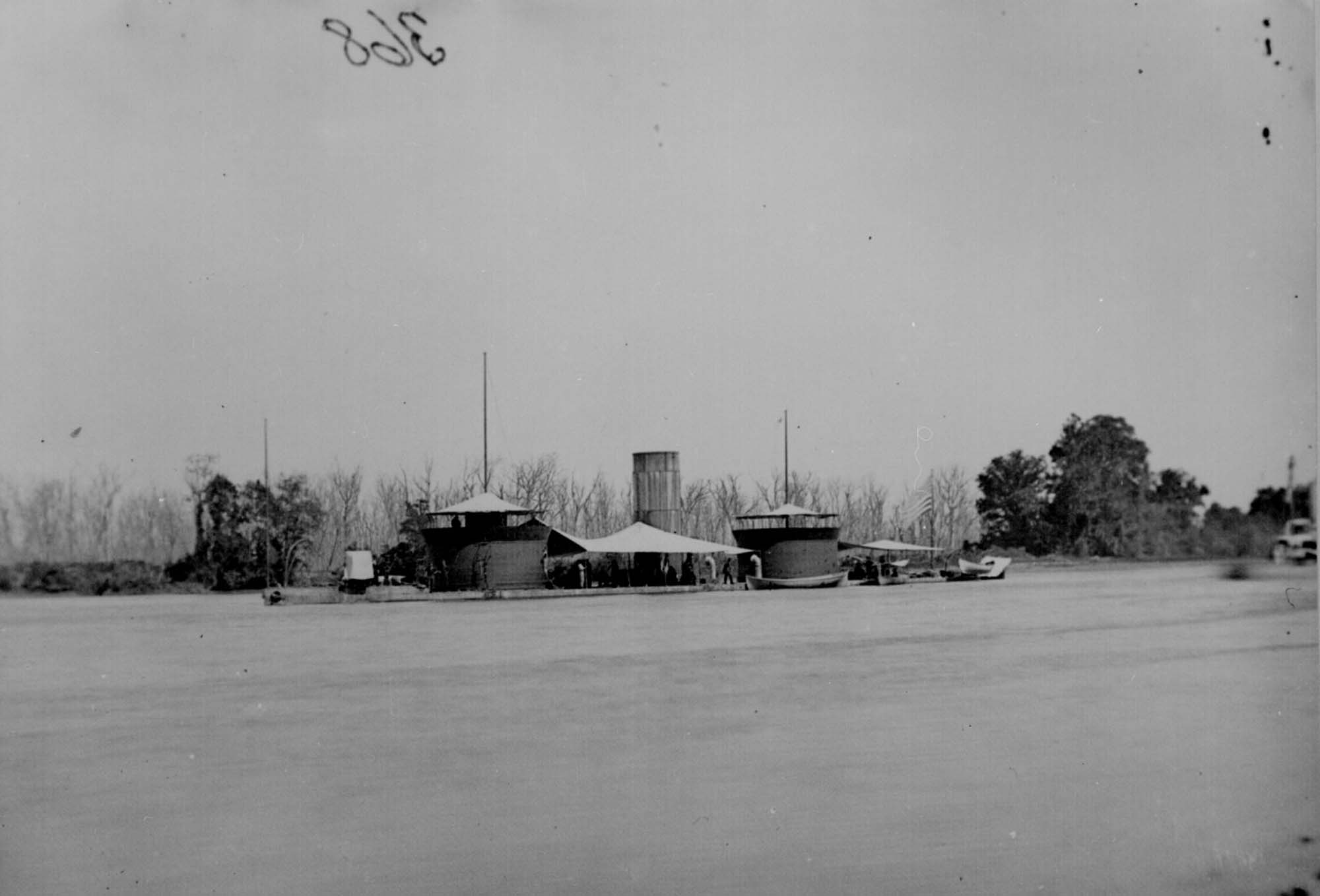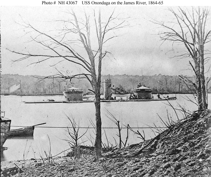 608k | Double turreted ironclad monitor Onondaga on the James River sometime between 1864 and 1865. | Photo coiurtesy of the Library of Congress, LOT 11486-F, no. 11 via Mike Green. | |