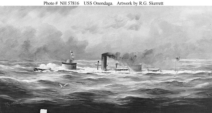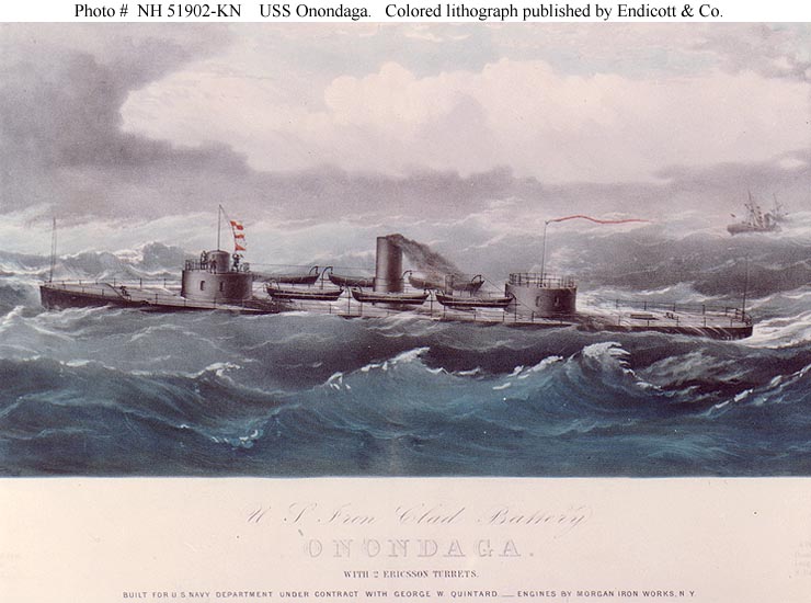 71k | Colored lithograph of the Onondaga by Parsons, published by Endicott & Company, New York, circa 1865. | Courtesy of the U.S. Navy Art Collection, Washington, D.C. U.S. Naval Historical Center Photograph # NH 51902-KN. | |