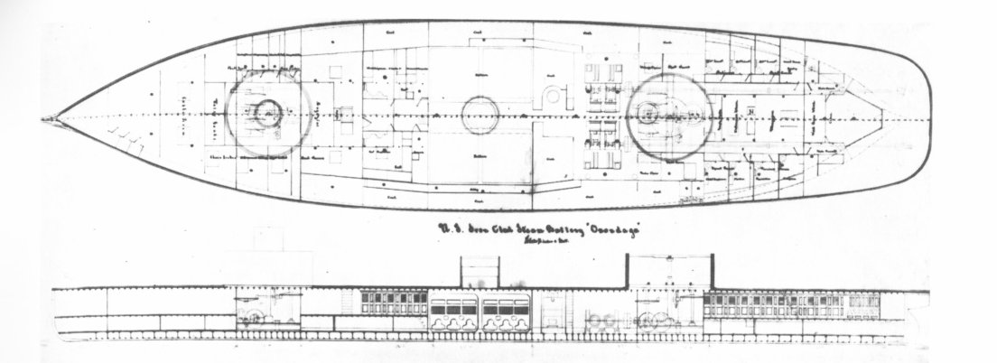 65k | Plan view of the Onondaga. | USN photo courtesy of "Monitors of the U.S. Navy, 1861-1937", pg 19, by Lt. Richard H. Webber, USNR-R. (LOC) Library of Congress, Catalog Card No. 77-603596. | |