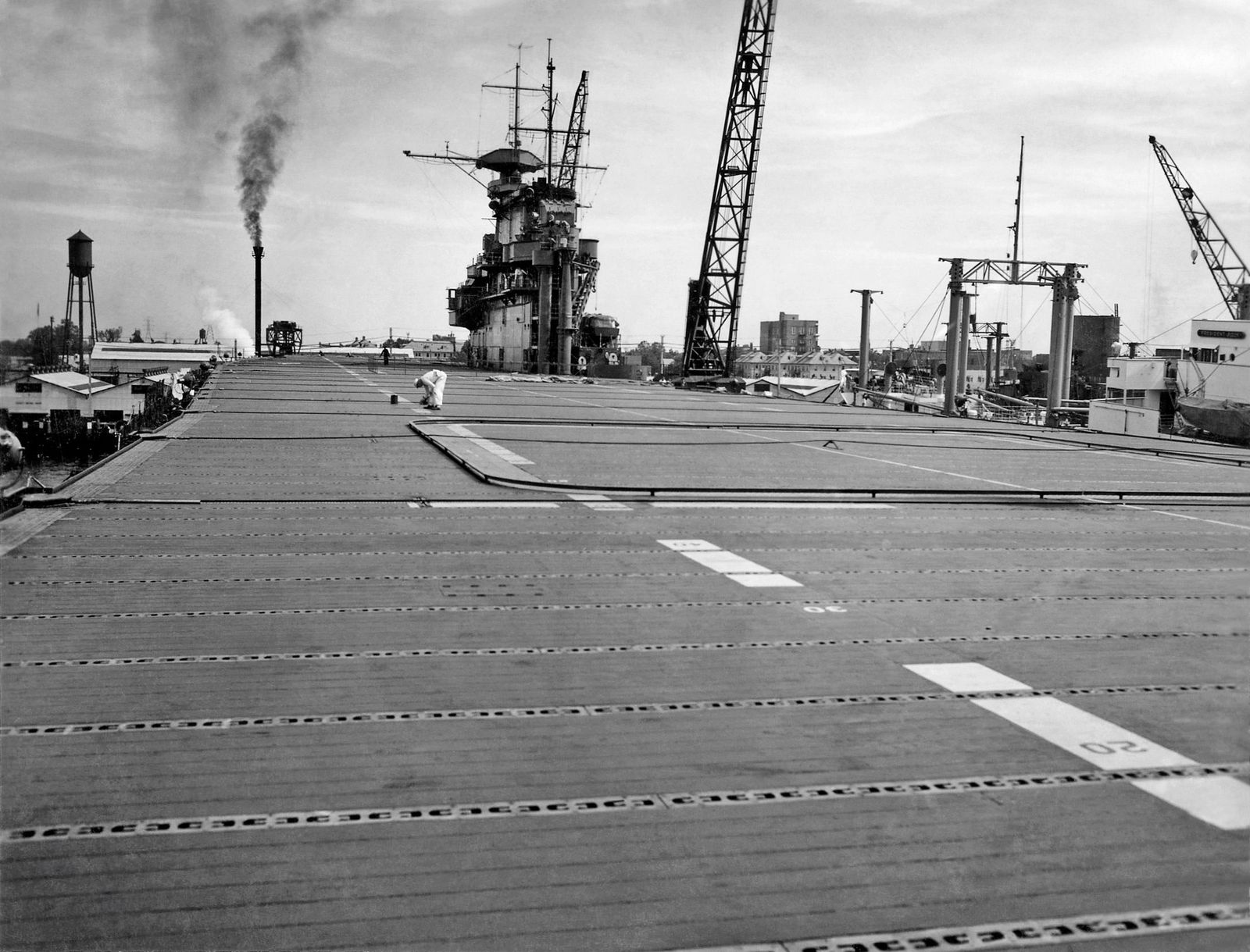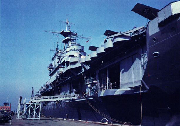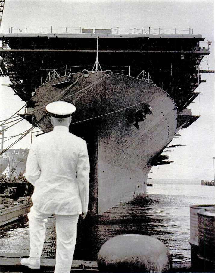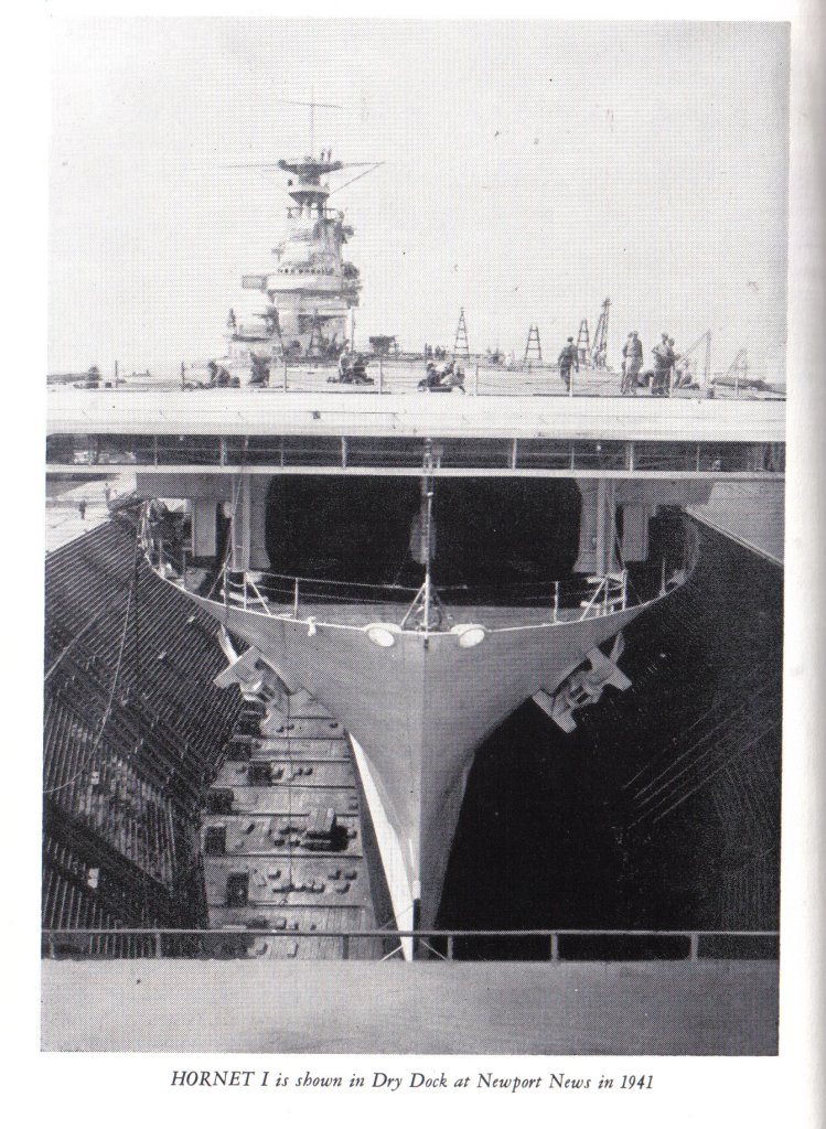 176k | Hornet (CV-8) is shown in Dry Dock at Newport News in 1941. |