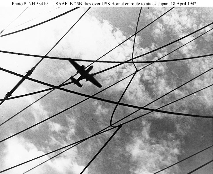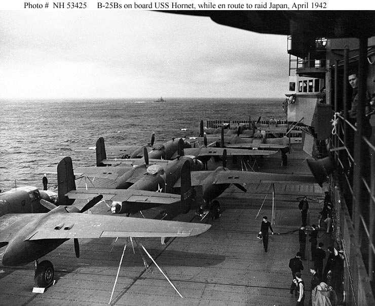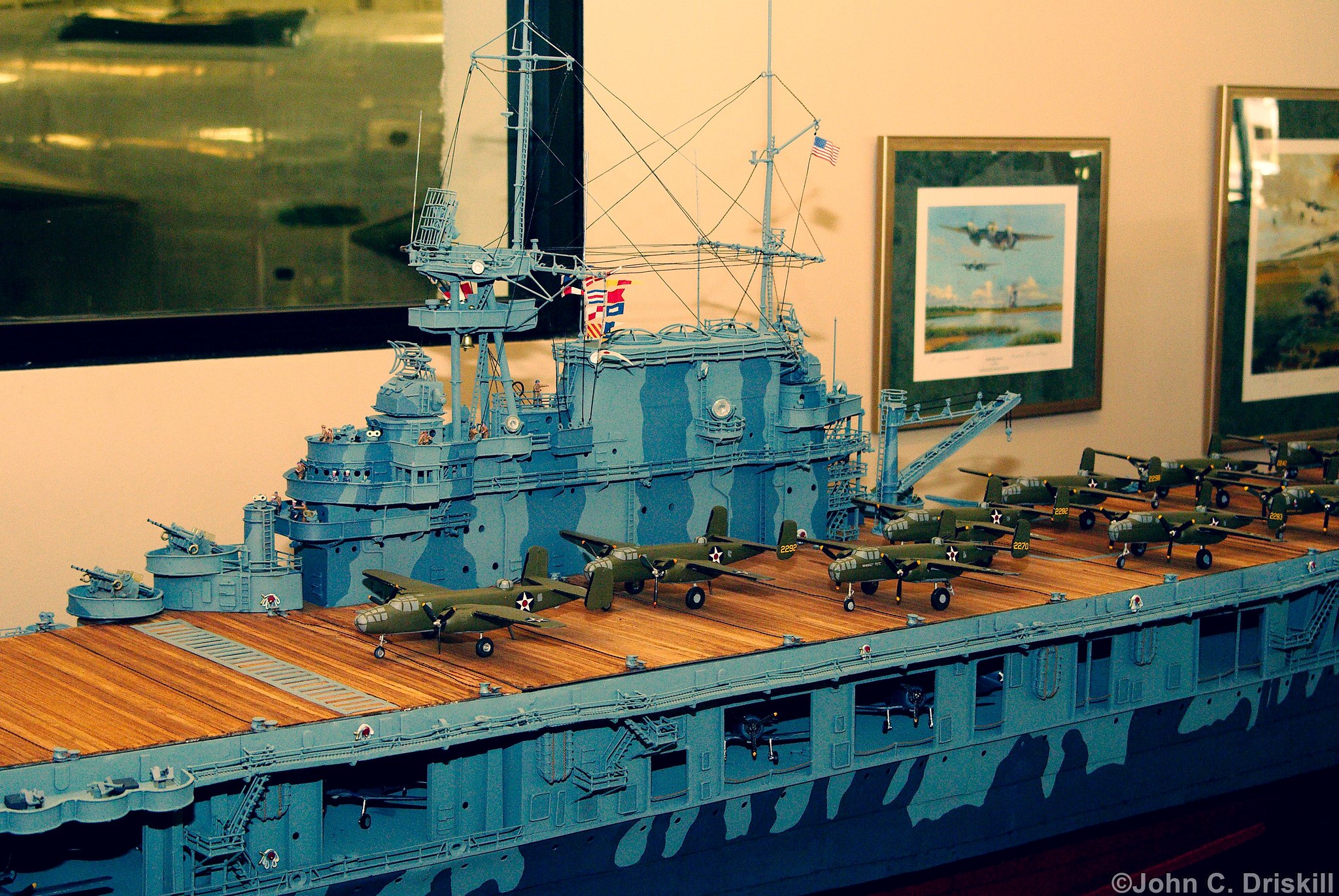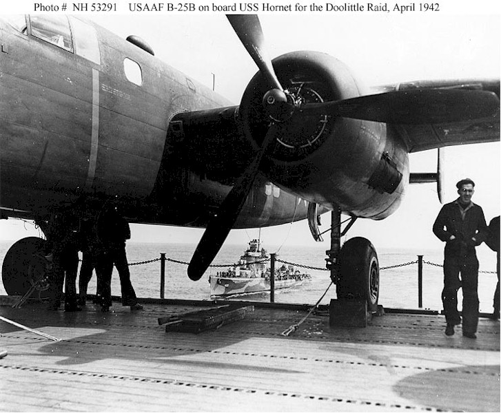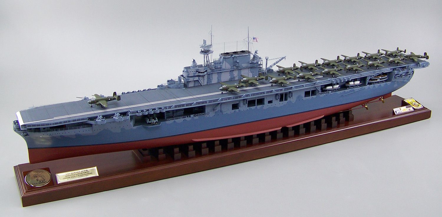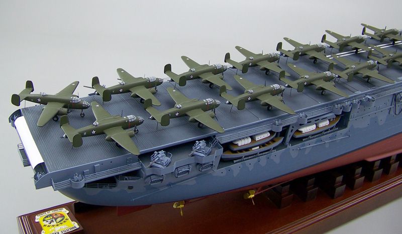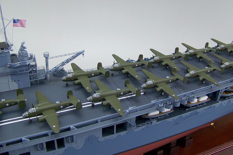 805k | Model of USS Hornet (CV-8), showing B-25B Mitchell medium bombers used for the Doolittle Raid on Japan. |