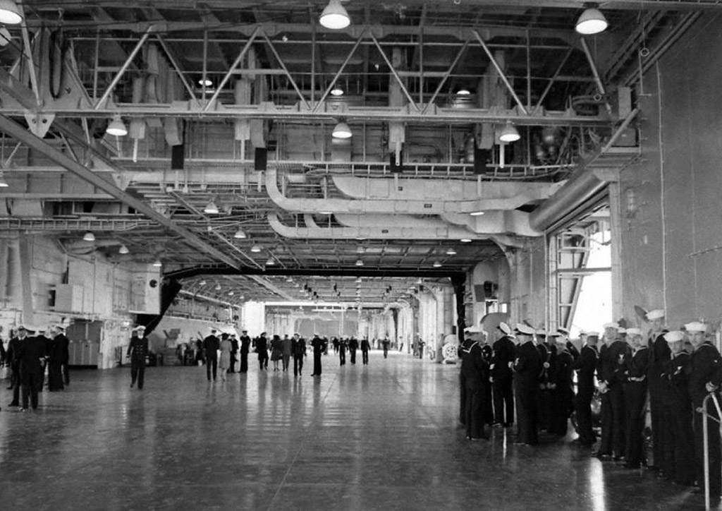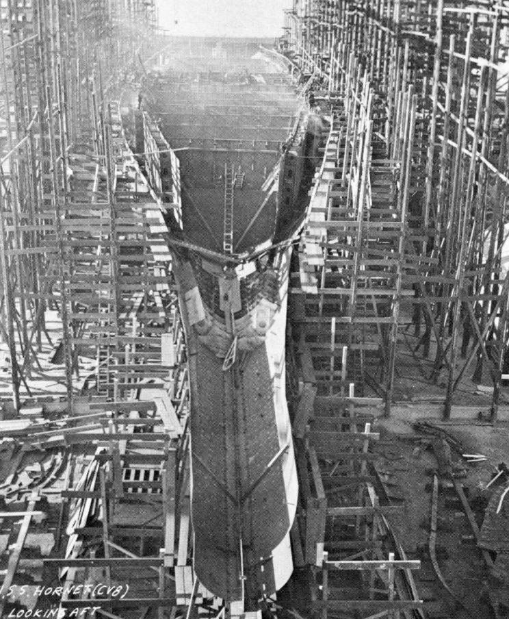 1.08M | The future USS Hornet (CV-8), looking forward, while being constructed at Newport News Shipbuilding, Newport News, Virginia, 4 December 1939. National Archives and Records Administration (NARA) photo, # 19-LC-26338. |