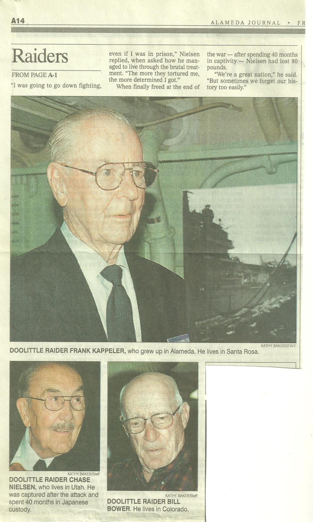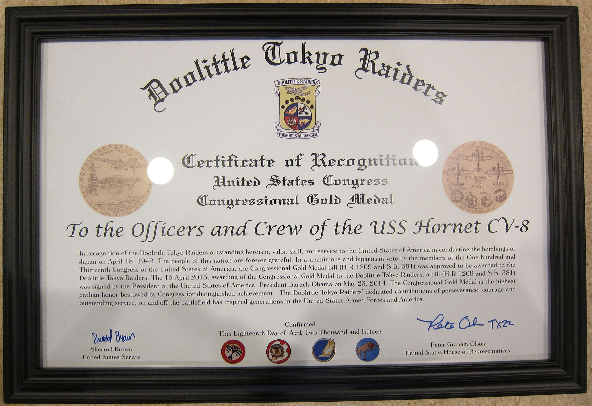 airmen and Marines, who took part in the Doolittle raid in April 1942, were officially recognized for