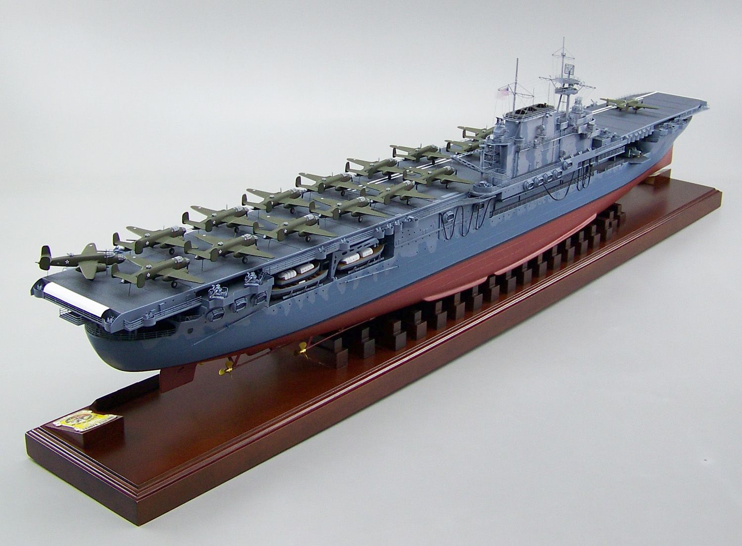 104k | This is a 60" model of USS Hornet (CV-8) at the time of the Doolittle Raid, April 1942. All B-25s are numbered correctly and there are F4Fs in the hangar. |
