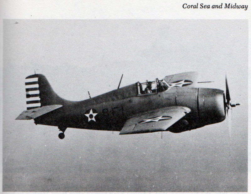 122k | "Squadron commanding officer's F4F-3 Wildcat from the aircraft carrier Hornet before that ship was withdrawn by Admiral Ernest J. King from the Atlantic to the Pacific to carry out the famous Tokyo Raid. With a top speed of 330 mph, the Wildcat was slower and less maneuverable than the Zero, her main opponent. Only by devising tactics that optimized the Wildcat's advantages, heavy firepower and rugged construction, could F4F fighter pilots effectively combat the Japanese." Photo and text from The Naval Air War, 1939–1945, by Nathan Miller, p.81. |