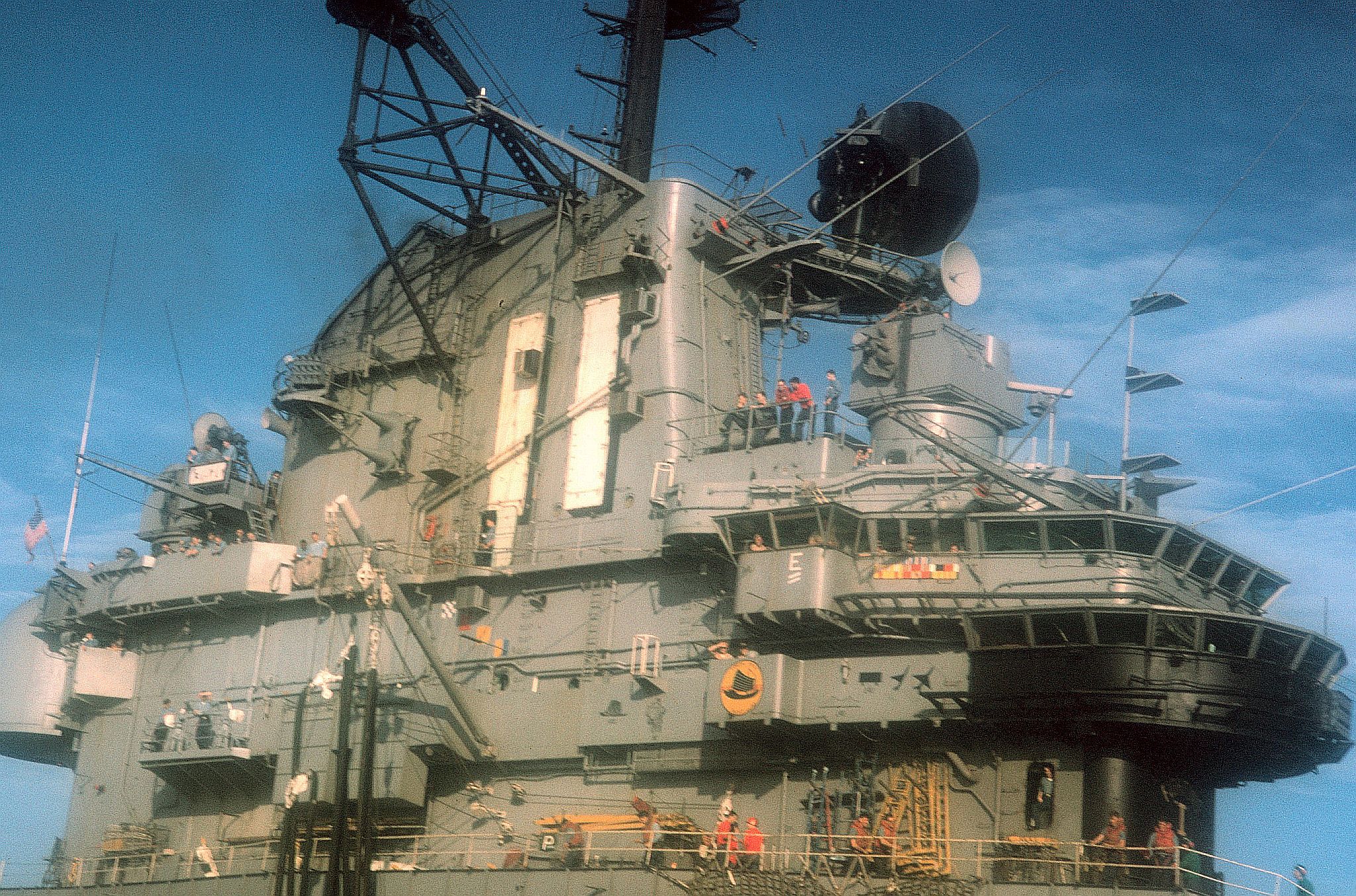 125k | Port side view of Intrepid's island. |