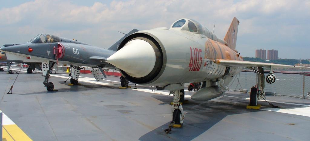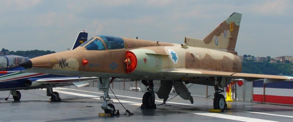 64k | Israel Aircraft Industries Kfir C-2, 1976. Between 1985 and 1989 the U.S. Navy and Marine Corps leased 12 Kfirs from Isarel to be used for training in what is called Dissimilar Air Combat Training. Given the designation F-21A, the Kfirs gave the American pilots experience against an adversary of unknown capability. (Quoted from the Intrepid Sea, Air & Space Museum.) |