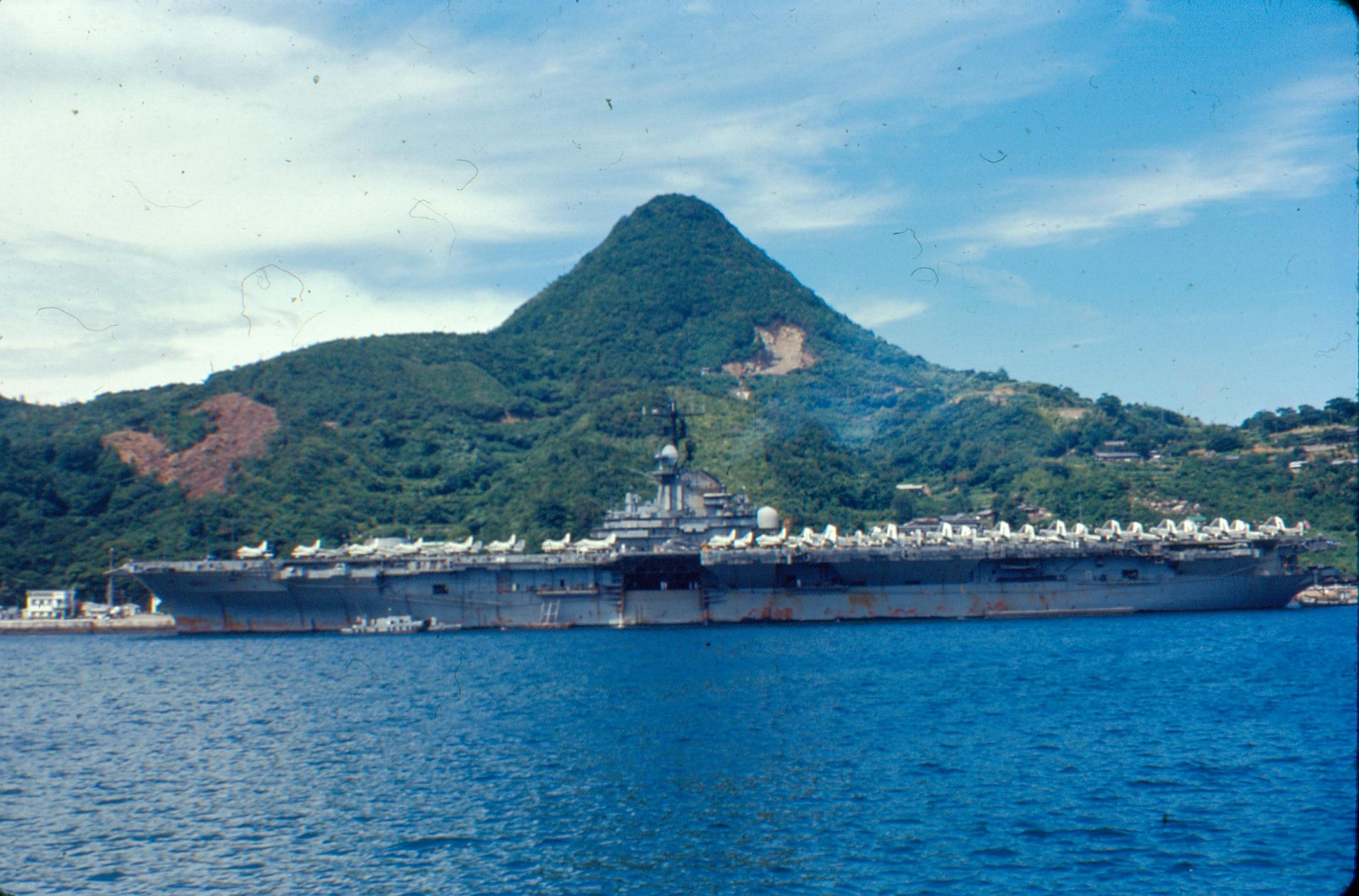 369k | USS Intrepid (CVS-11), with Carrier Air Wing (CVW) 10, in Sasebo, Japan, 15–23 August 1966. Photo taken from USS Constant (MSO-427). |