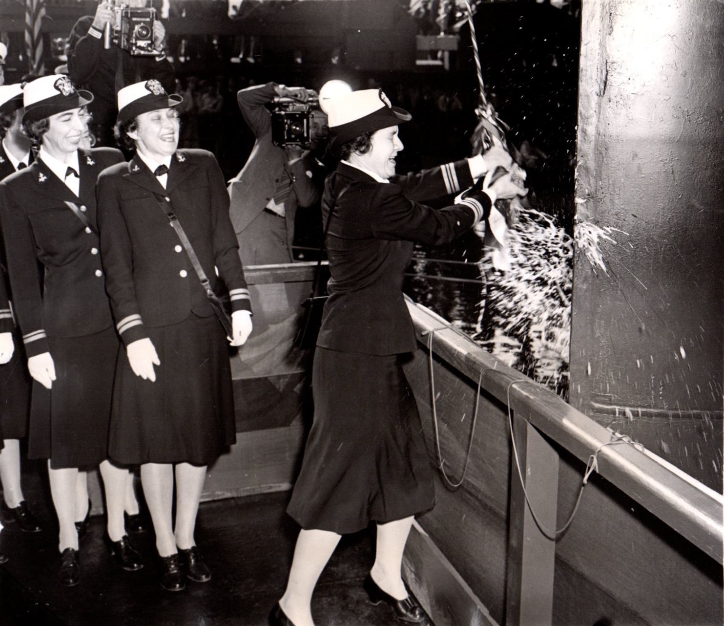 782k | Franklin (CV-13) was christened at the Newport News Shipbuilding and Dry Dock Company, Virginia, on Thursday, 14 October 1943, by Lieutenant Commander Mildred H. McAfee, USNR, Director of the WAVES (Women Accepted for Volunteer Emergency Service). |