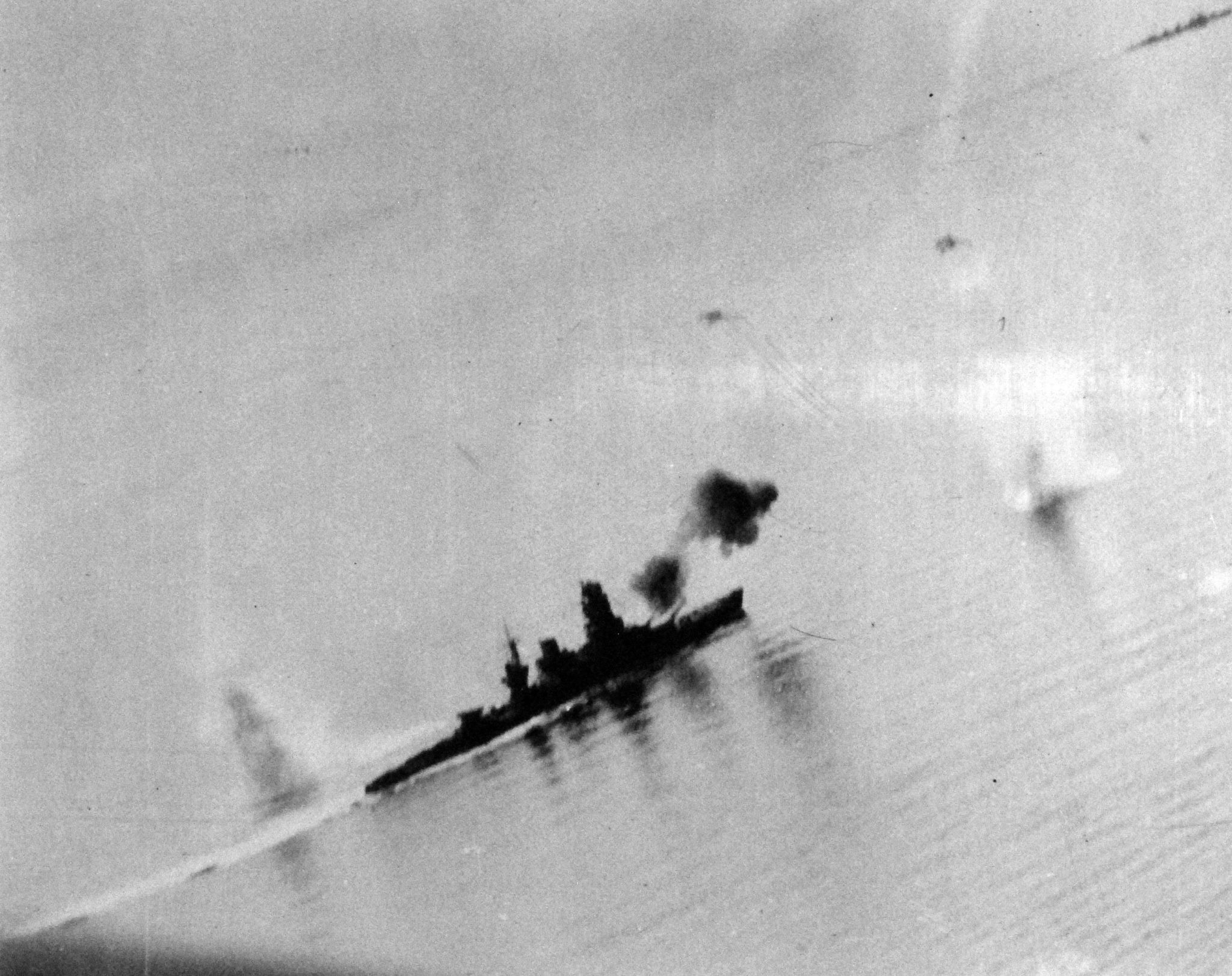 362k | Battle of the Sibuyan Sea. Japanese warships under attack by carrier-based planes at Northeast Luzon. Taken from a plane from USS Franklin (CV-13), 24 October 1944. National Archives and Records Administration (NARA) photo, # 80-G-272554. |
