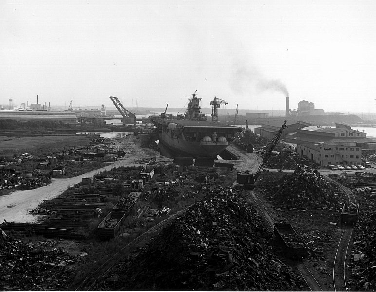73k | Ex-USS Franklin at Jacobson Salvage in Chesapeake, VA prior to scrap, August 1967. |