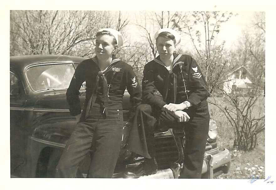 220k | Kermit (left) and Hal Smith in the Navy, 1946. |