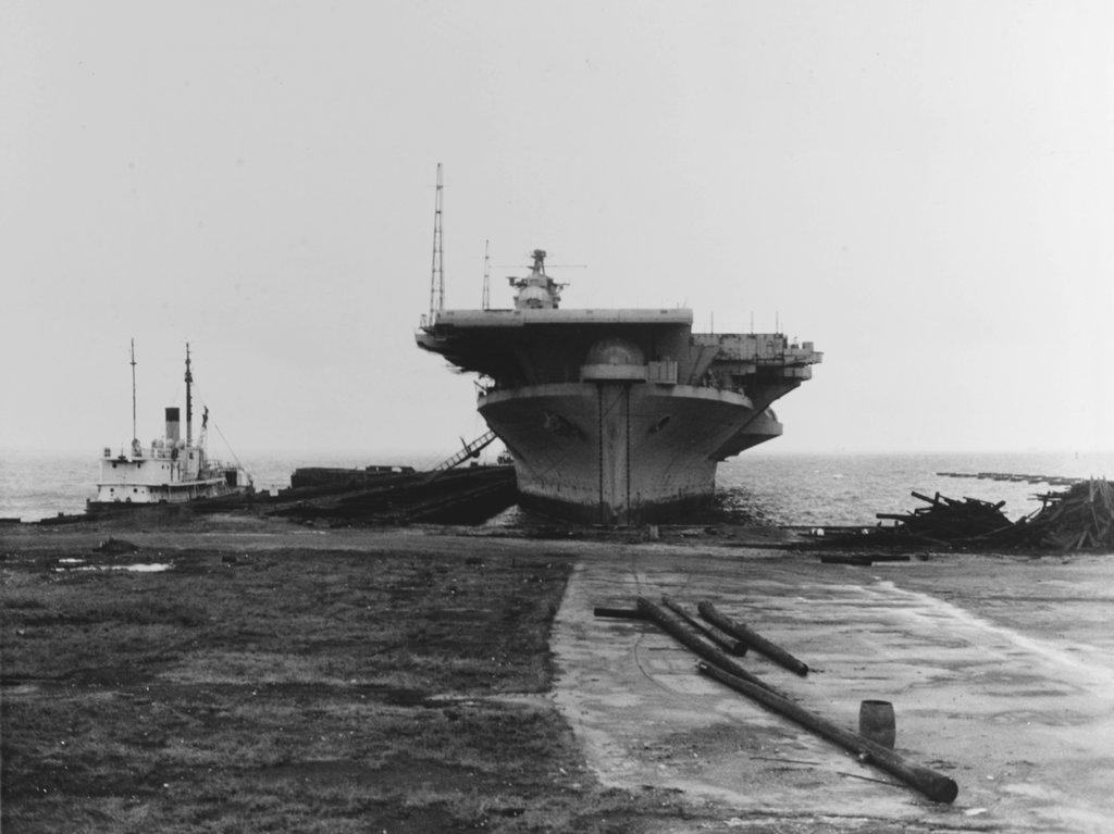 37k | Norfolk, Virginia, 1965. Ex-Franklin was towed there from Bayonne, New Jersey, to be stripped (MILSTRIP) before being sold for scrapping. |