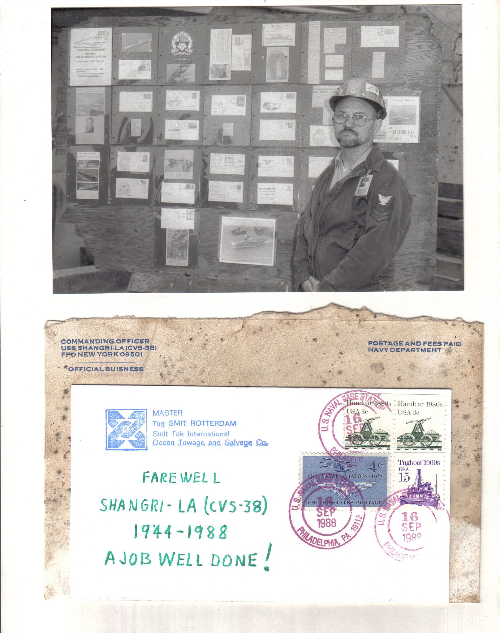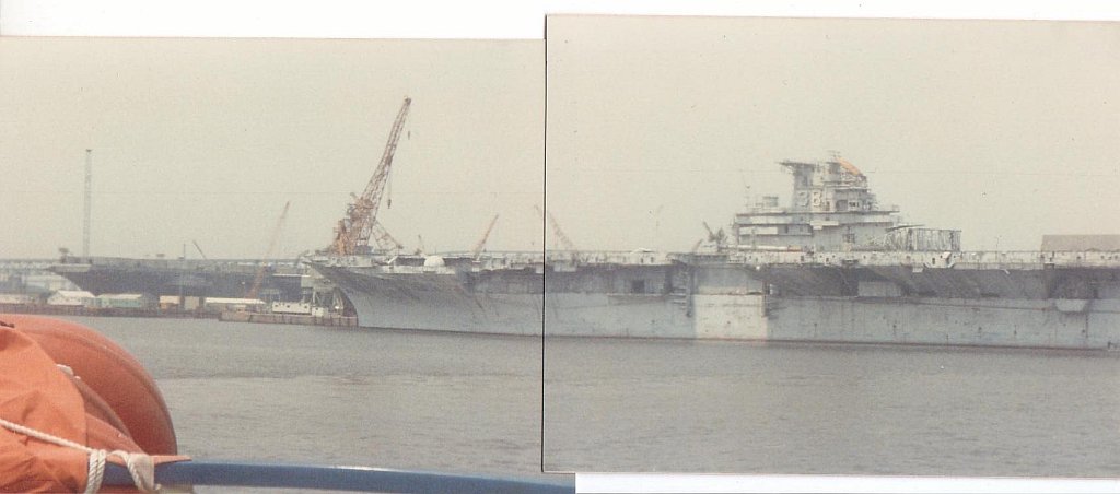 61k | Ex-USS Shangri-La moored at the Philadelphia Navy Yard in June 1988, shortly before she was towed to Kaohsiung, Taiwan to be scrapped. | Gary Schurr | |||||||||||||