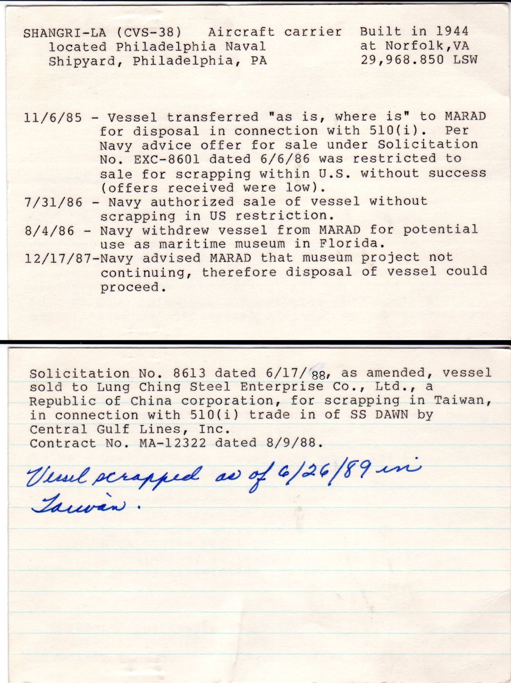 224k | PMARS card for ex-USS Shangri-La (CVS-38). | Ron Reeves | |||||||||||||