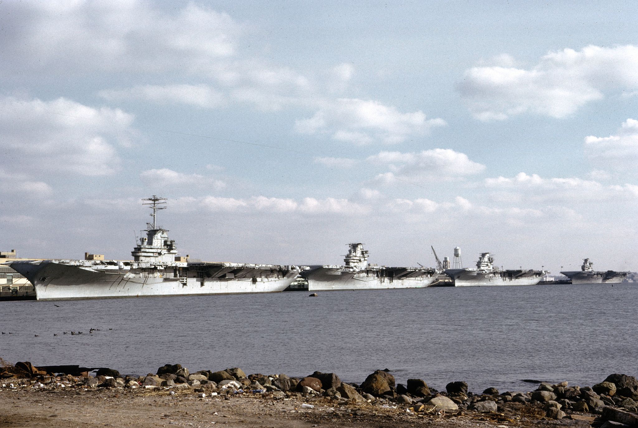 475k | Ex-USS Shangri-La (CVS-38), ex-USS Essex (CVS-9), ex-USS Yorktown (CVS-10), and ex-USS Randolph (CVS-15), in mothballs, Bayonne, New Jersey, December 1973. | Mark Heilenday, CAPT, USN (Ret.) | |||||||||||||