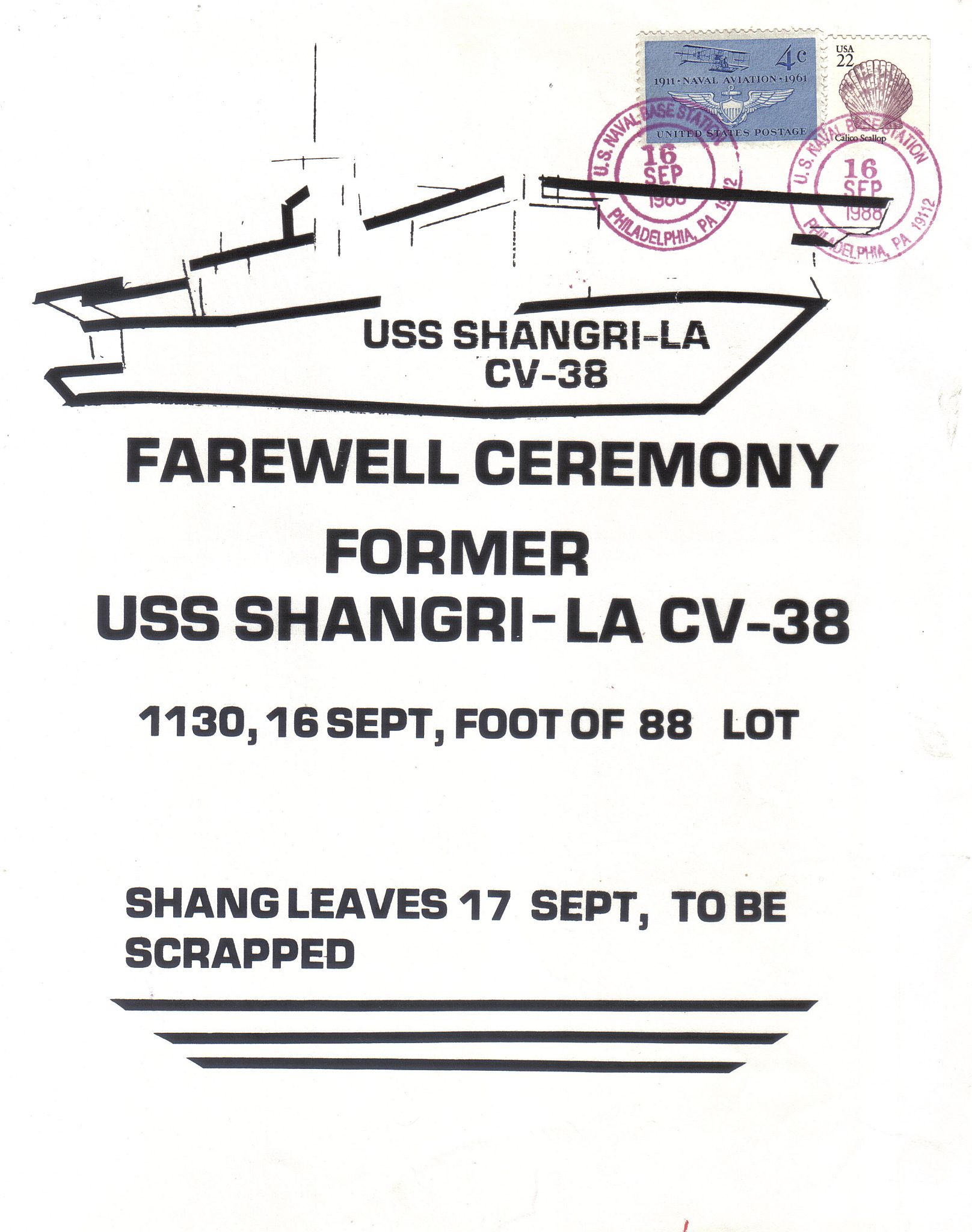 268k | USS Shangri-La (CV-38), Farewell Ceremony, at 1130, 16 September 1988. |