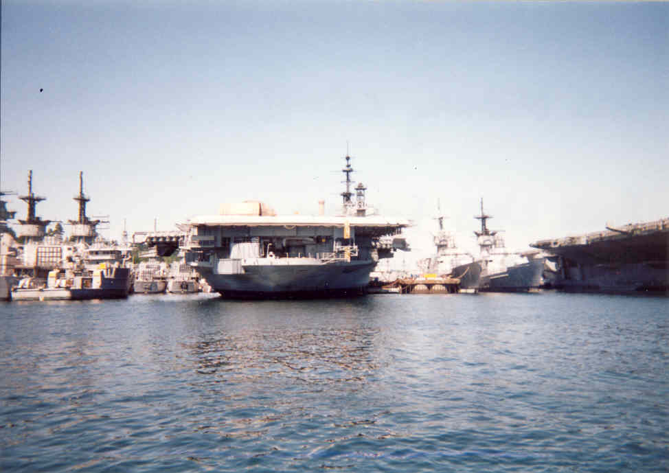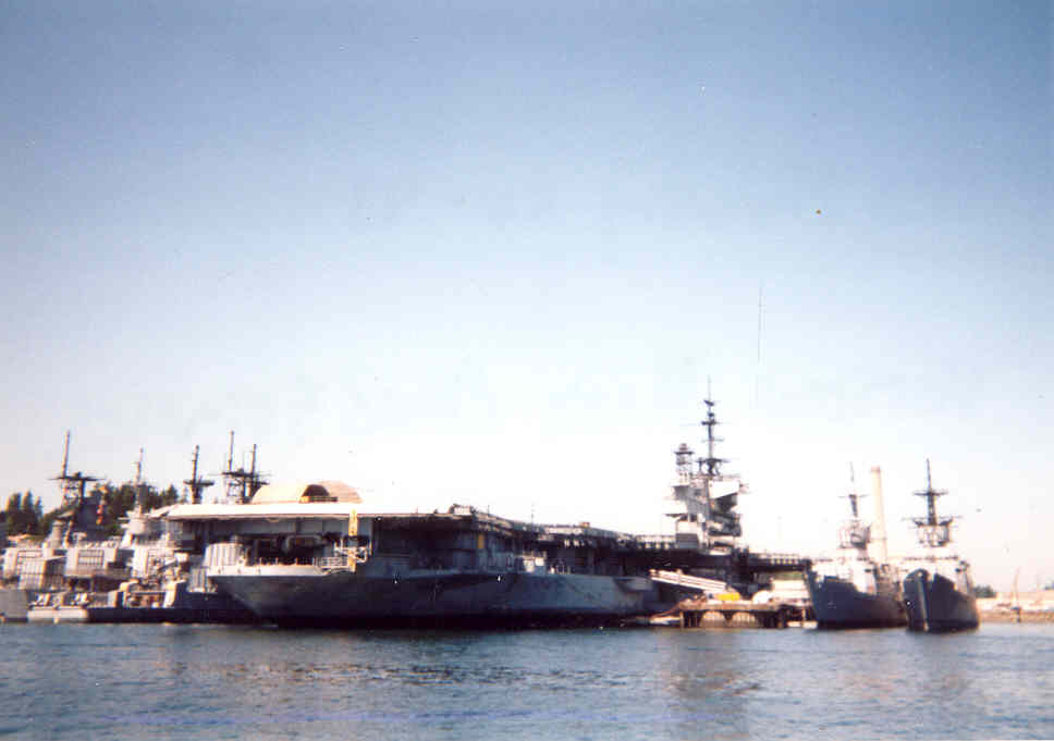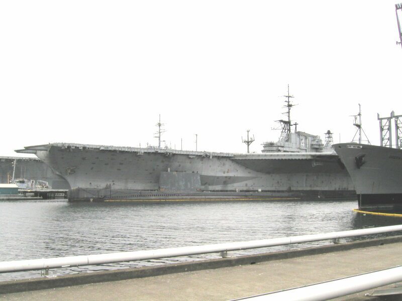 66k | Midway at Oakland, Calif., October 11, 2003. (See Fate). I took this photo while on board the Liberty ship Jeremiah O'Brien during the Fleet Week cruise. |