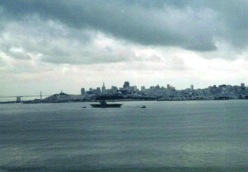 64k | The final voyage of ex-USS Midway (CV-41). She is proceeding under tow, towards the Golden Gate and her trip down the coast to her final berth at San Diego, where she will open as a museum, possibly by June. This image is pretty fuzzy, but still significant as the final sailing after almost 60 years. |