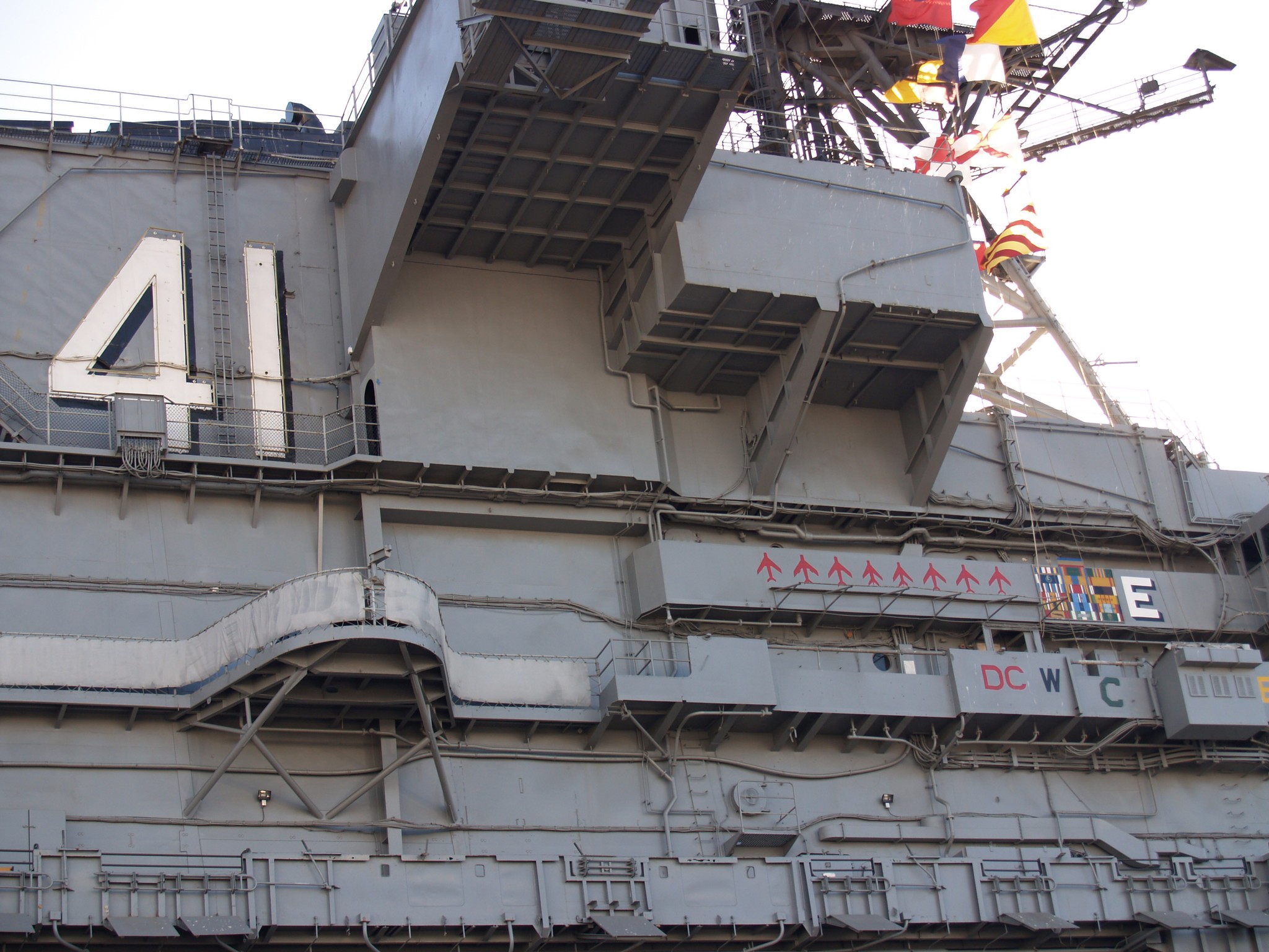 146k | Midway's island structure, starboard view; gangway. |